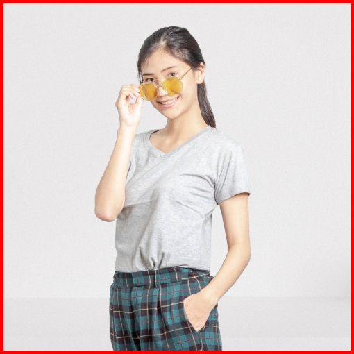 Sf V Neck Abu Misty Wanita Kaos Katun Kaos Polos Katun Premium South Formed
