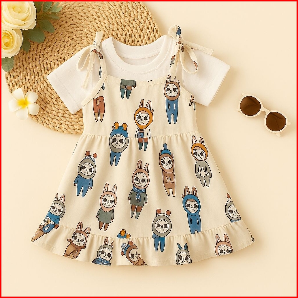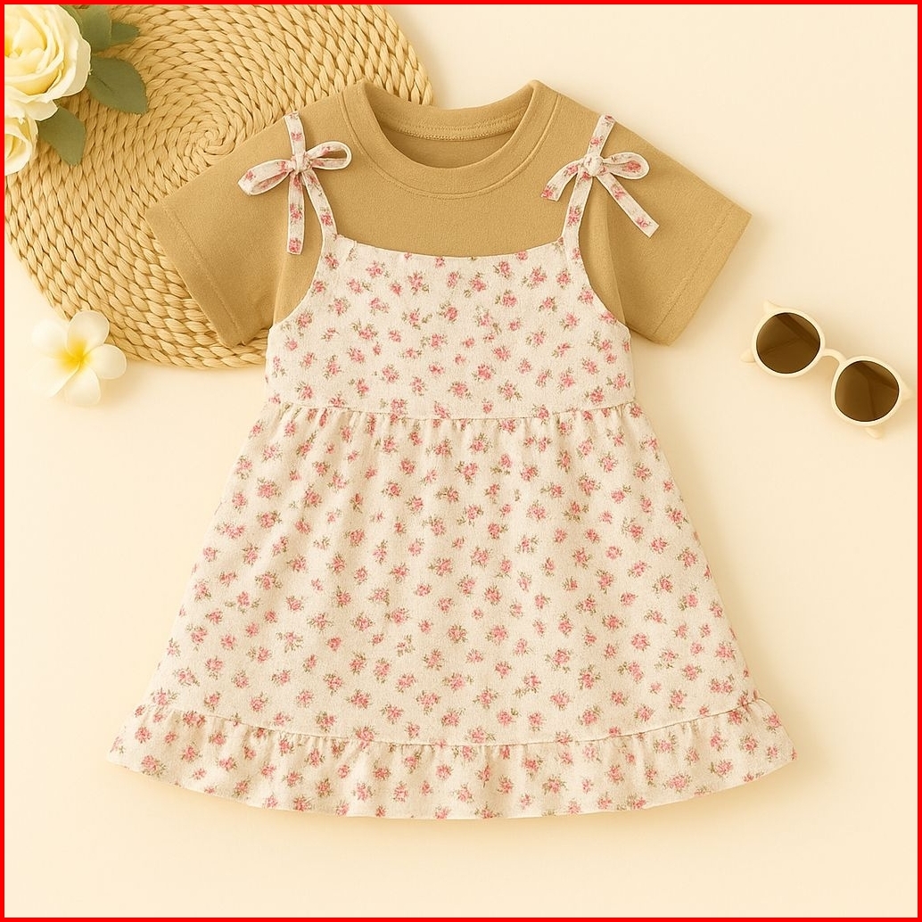 Violine Store - Overall Dress 2in1 Anak Perempuan Kecil Bayi Katun Kids Girl Motif Bunga Rayon Adem Lucu Kekinian 2024 M