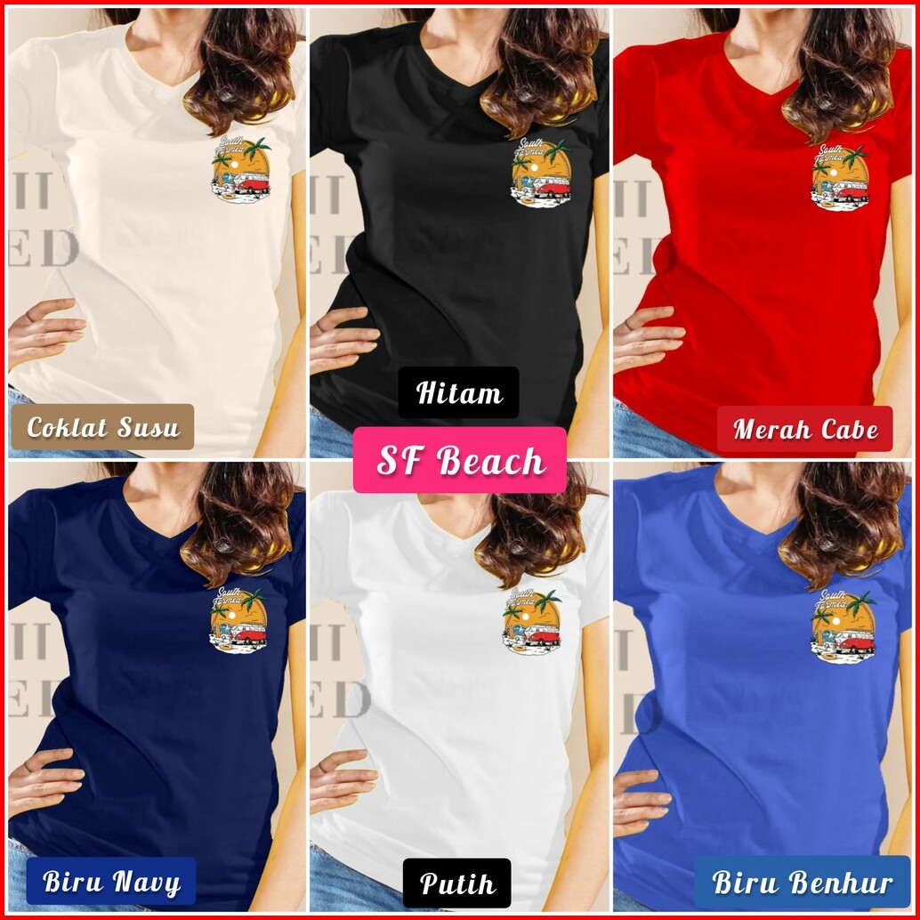 Sf V Neck Sf Beach Wanita Kaos Katun Kaos Gambar Katun Premium South Formed