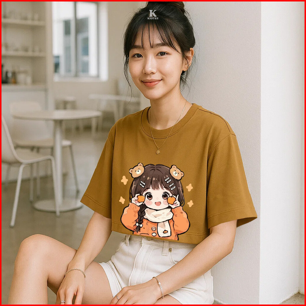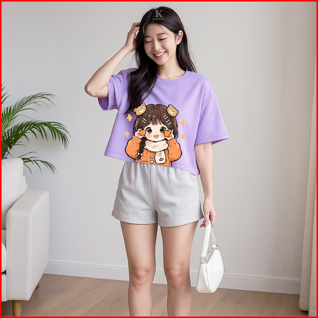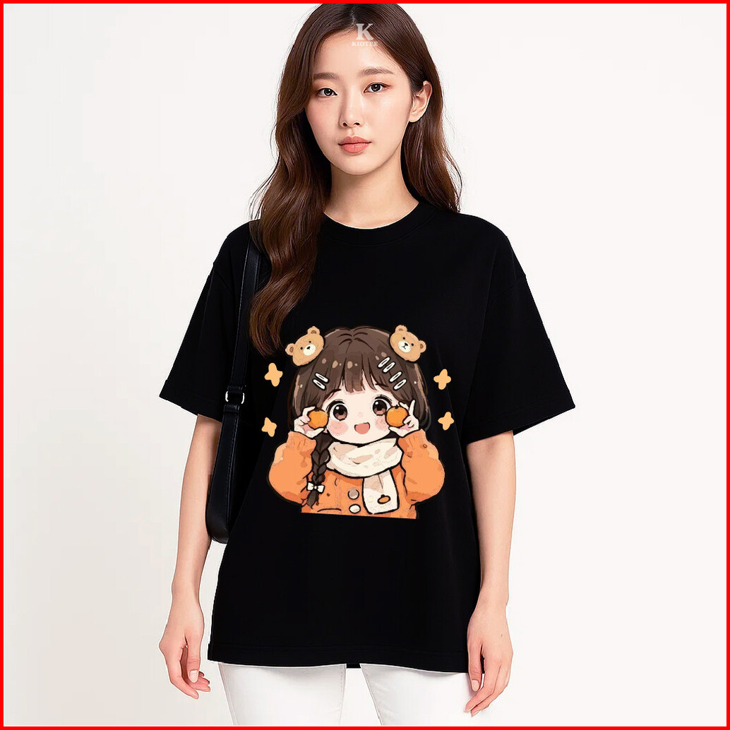 Kioteeshop Kaos Lengan Pendek Viral Bahan Katun Lembut Couple Kaos Crop Top Motif Cewe Pegang Jeruk