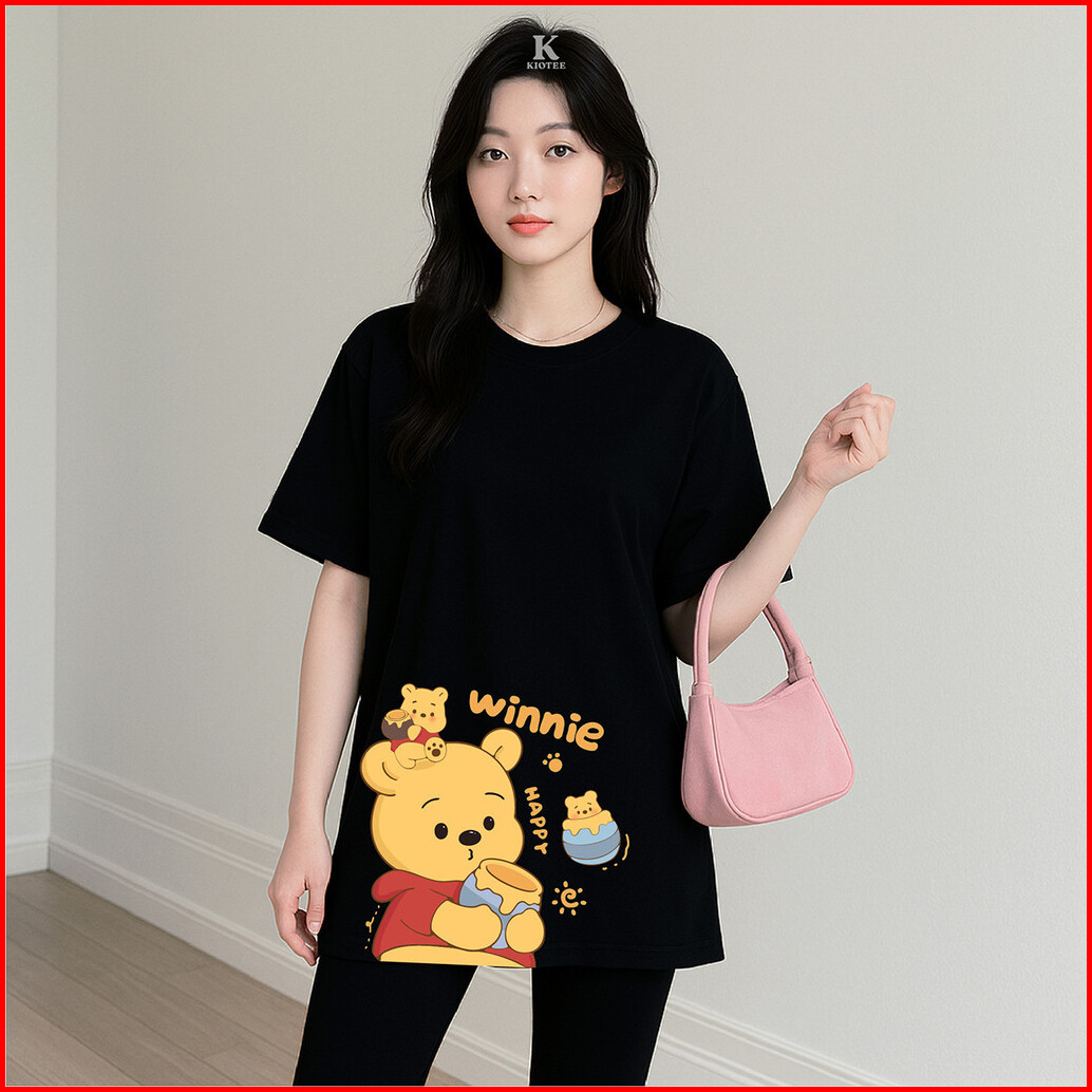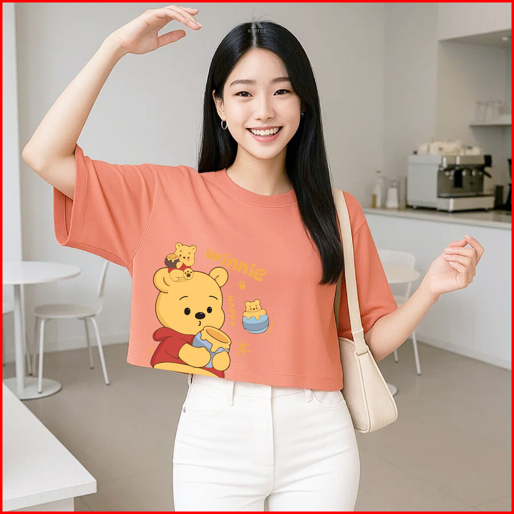 Kioteeshop Kaos Oversize Kaos Crop Top Korea Style Gambar Winnie Pooh Madu