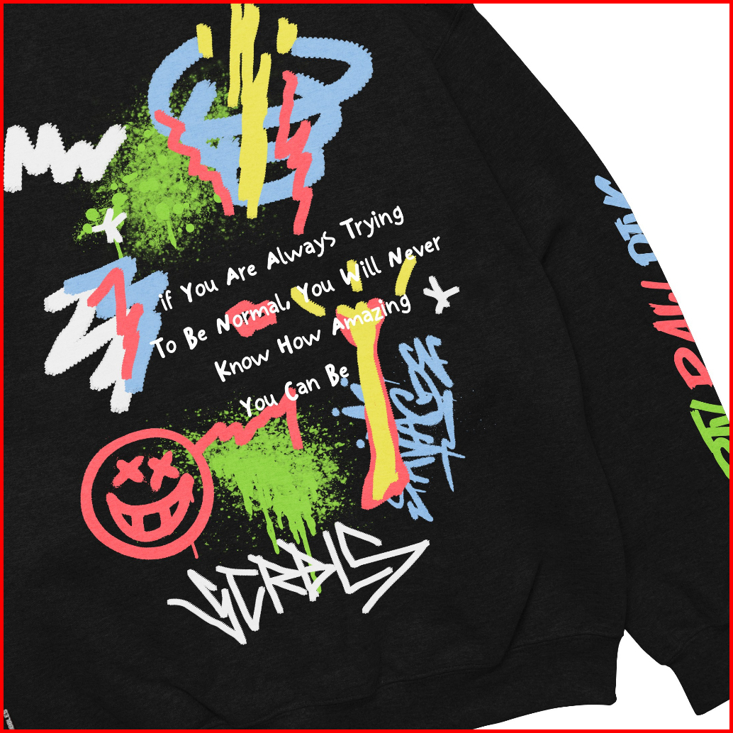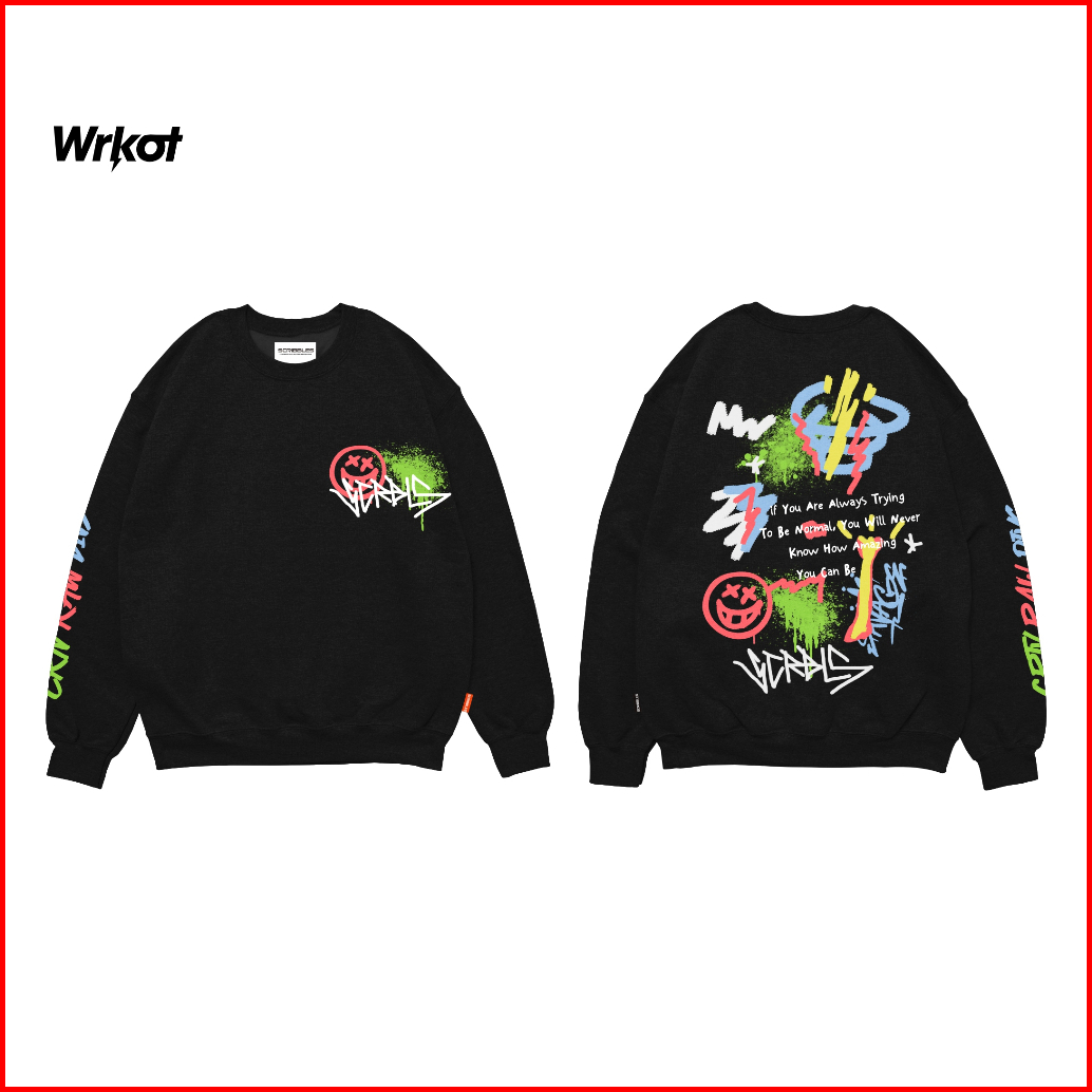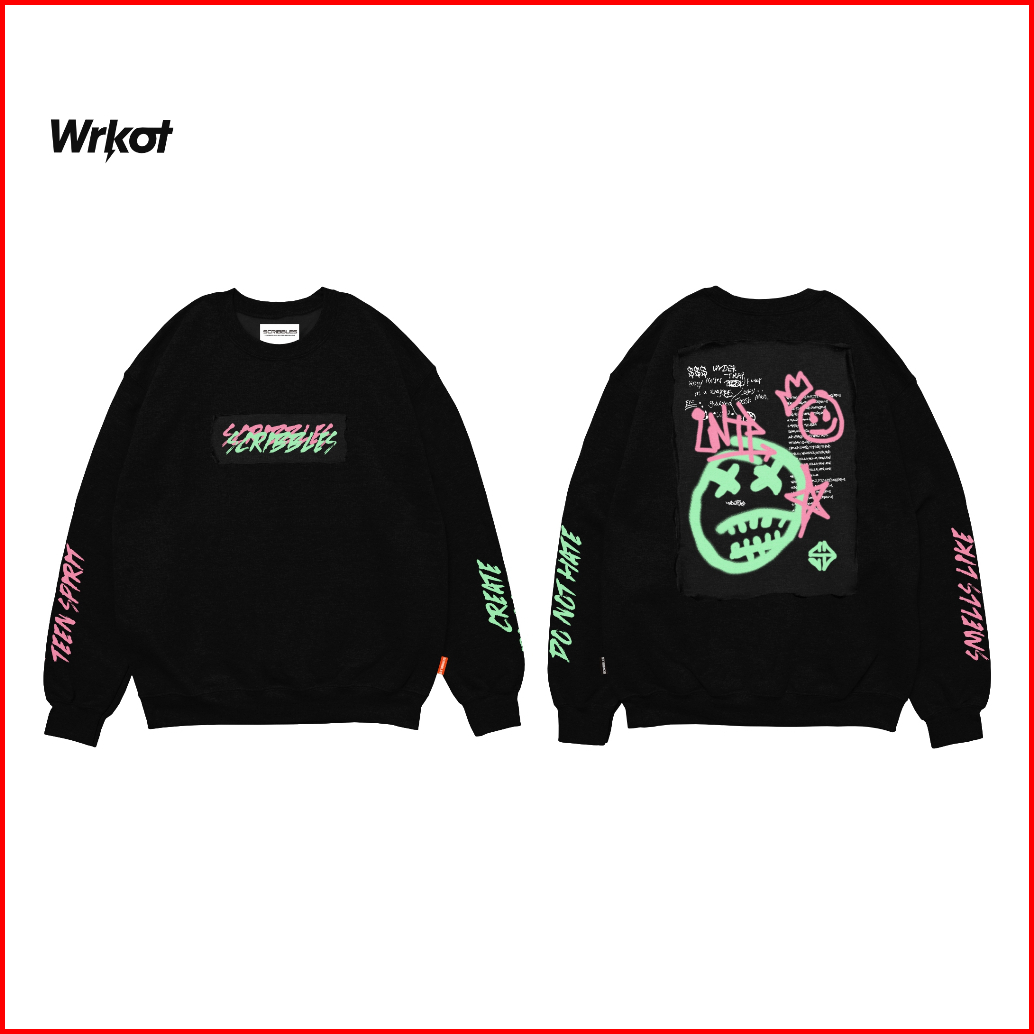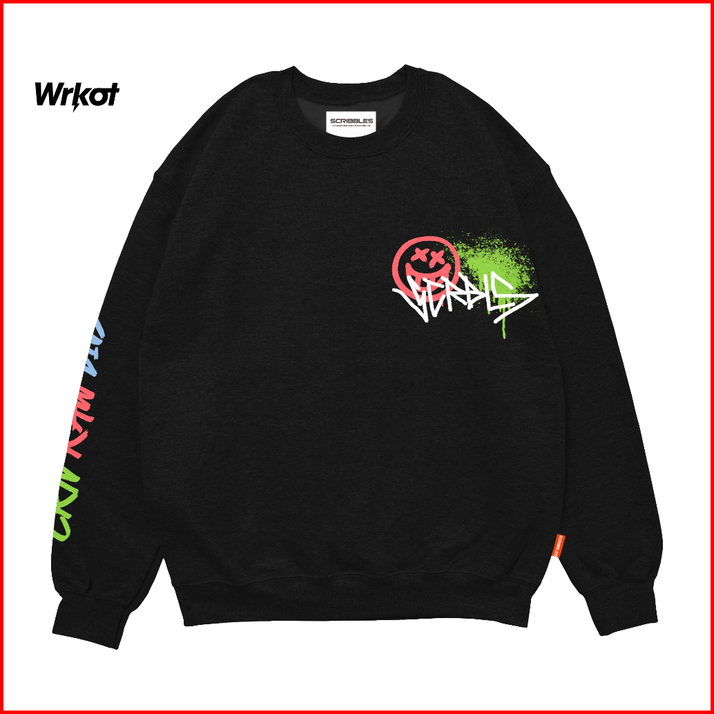 Workout Streetwear X Scribbles Sweater Crewneck Pria Upnormal Black Up To Big Size Best Seller