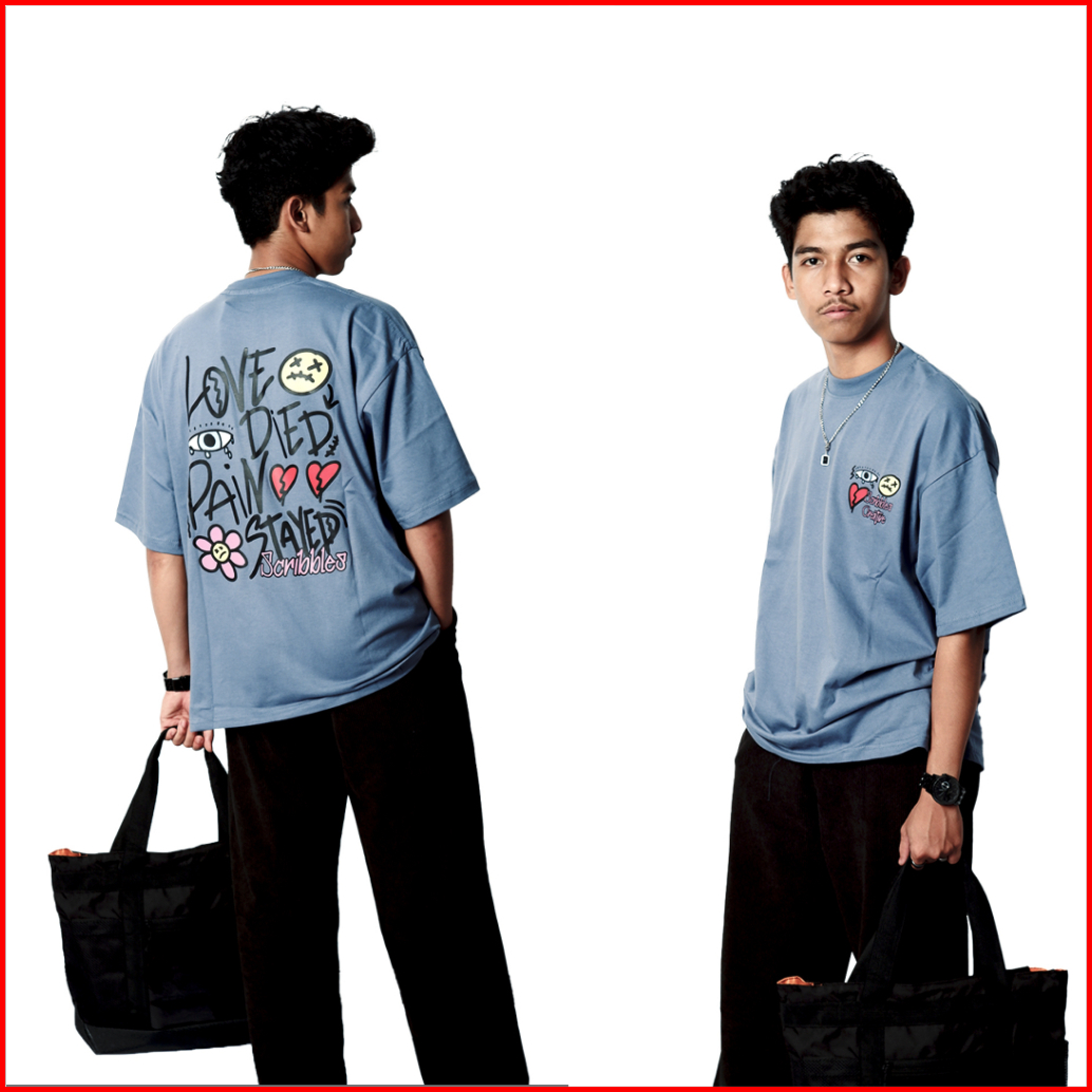 Workout Streetwear Baju Kaos Tshirt Oversize Boxy 16s Painters Biru Denim