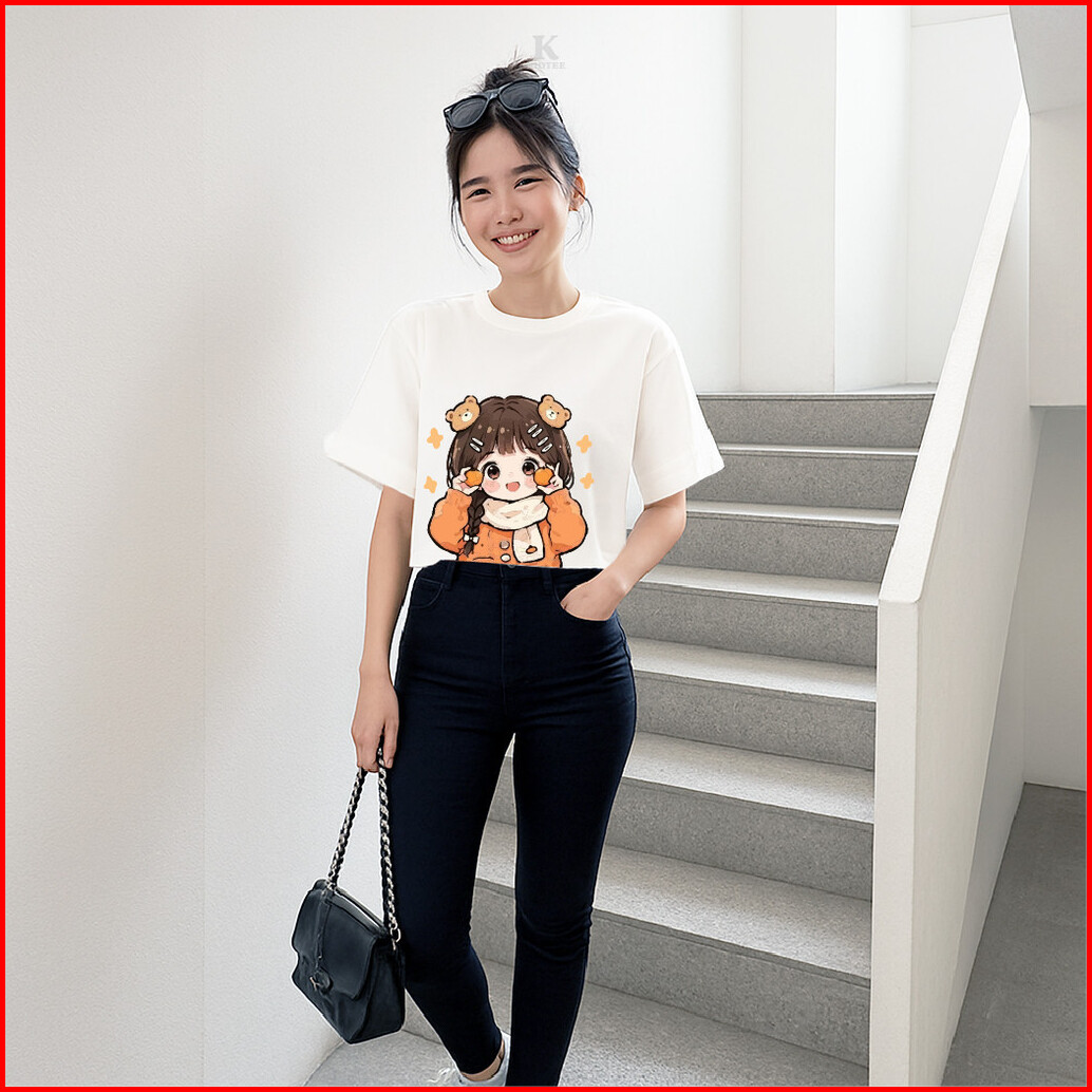 Kioteeshop Kaos Lengan Pendek Viral Bahan Katun Lembut Couple Kaos Crop Top Motif Cewe Pegang Jeruk