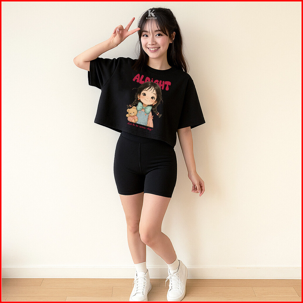 Kioteeshop Baju Kaos Crop Top Bahan Katun Lengan Pendek Motif Cewealright