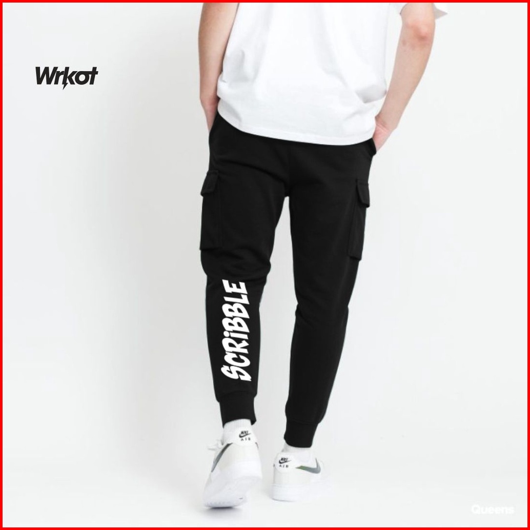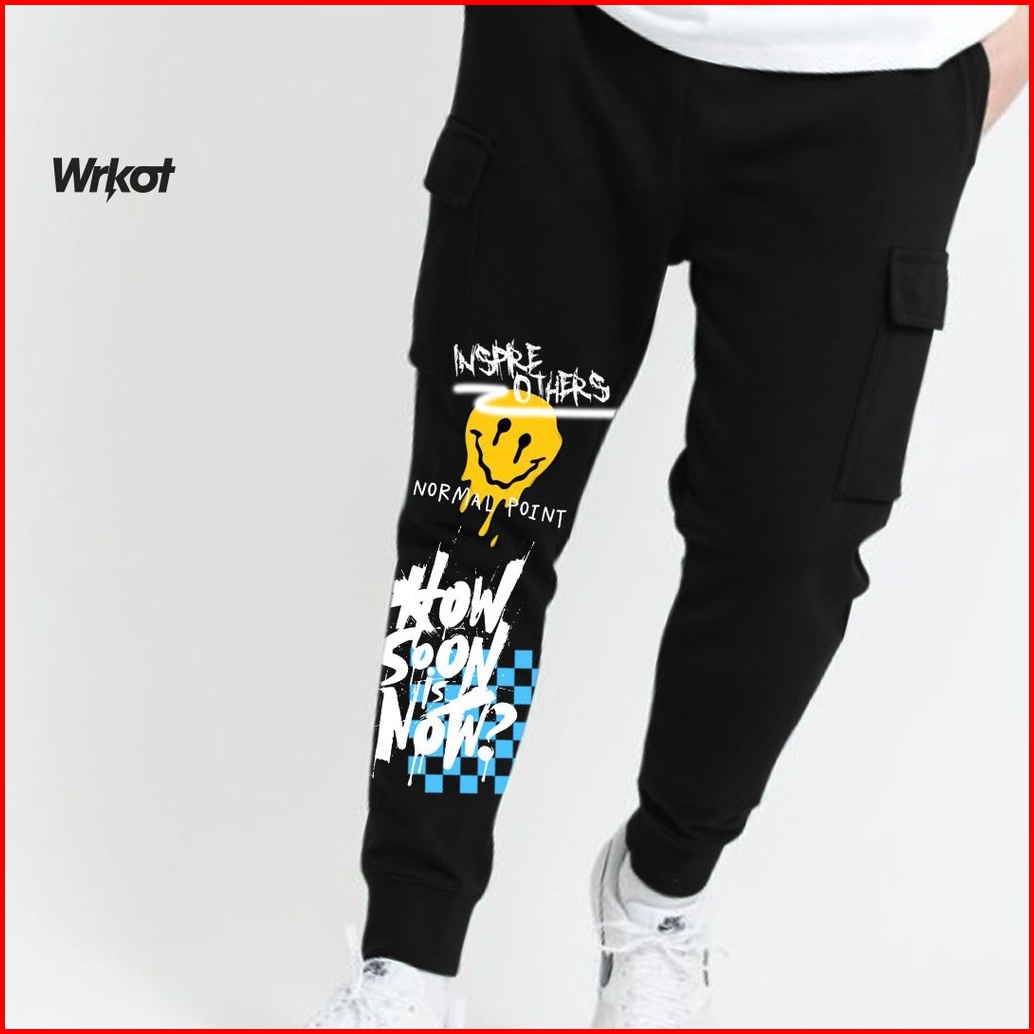 Workout Streetwear Celana Jogger Pants Cargo Fake Smile Black Pakaian Pria Dan Wanita