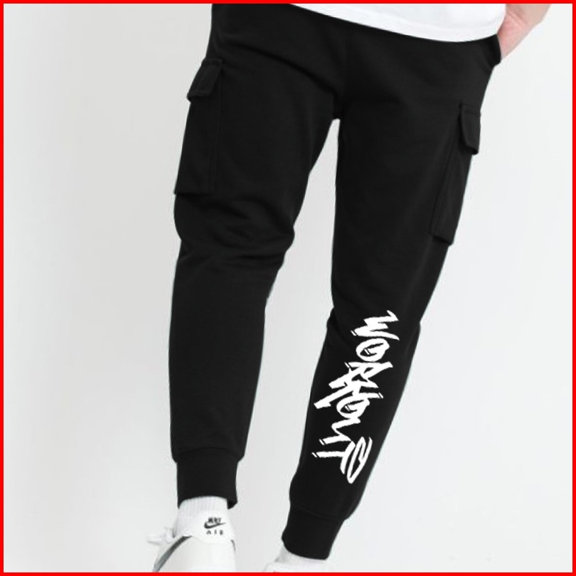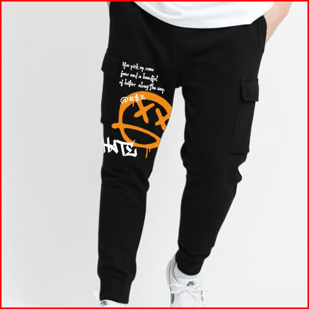 Workout Streetwear Celana Jogger Pants Cargo Sadness Black Pakaian Pria Dan Wanita