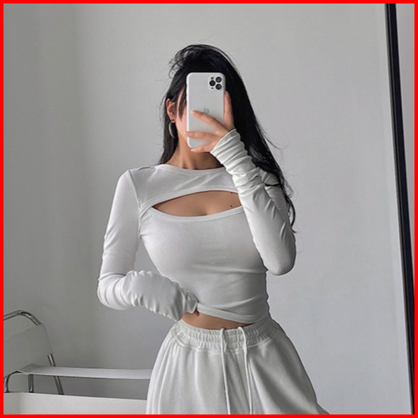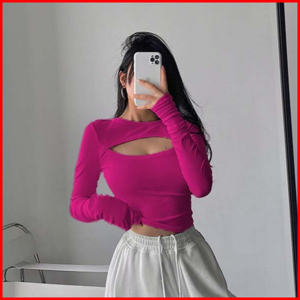 Crop Top Korea Lengan Panjang Wanita - Baju Kaos Atasan Crop Korea - Rayon Spandek 6016