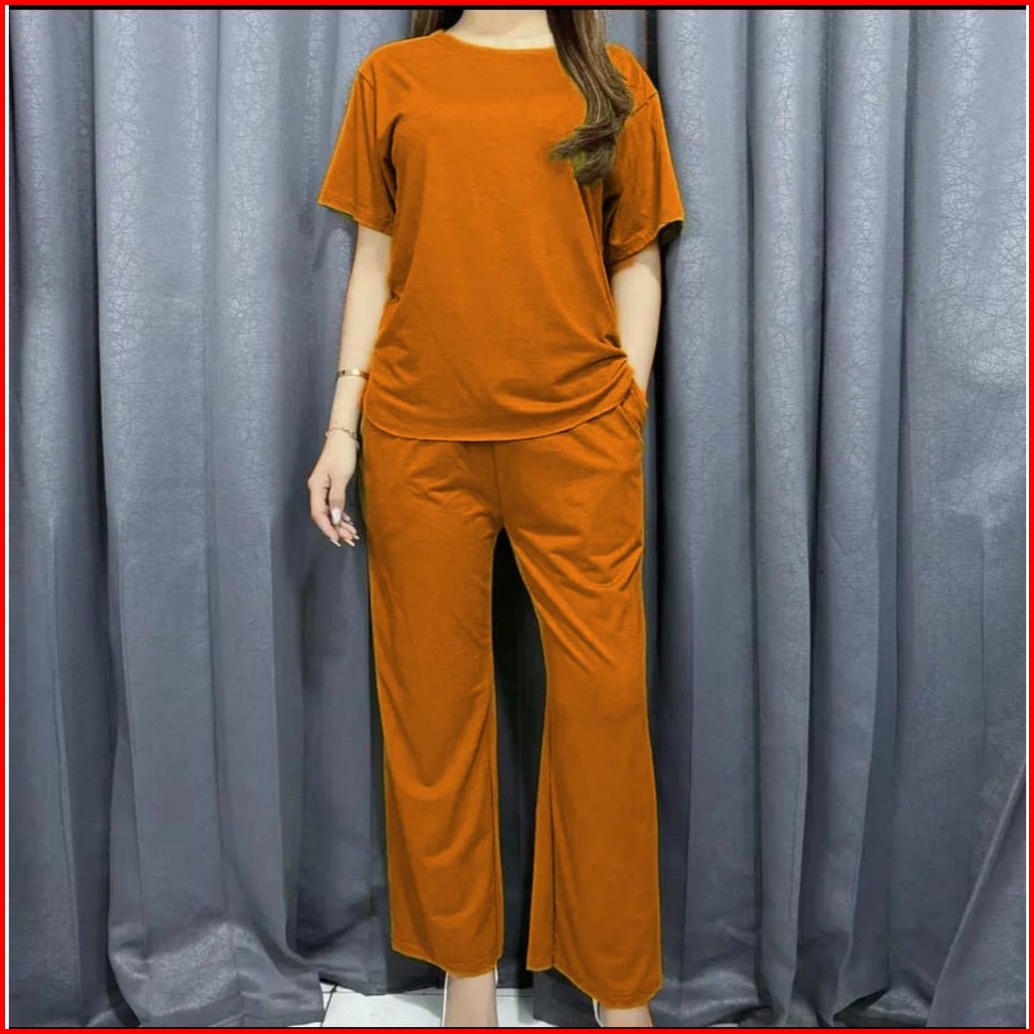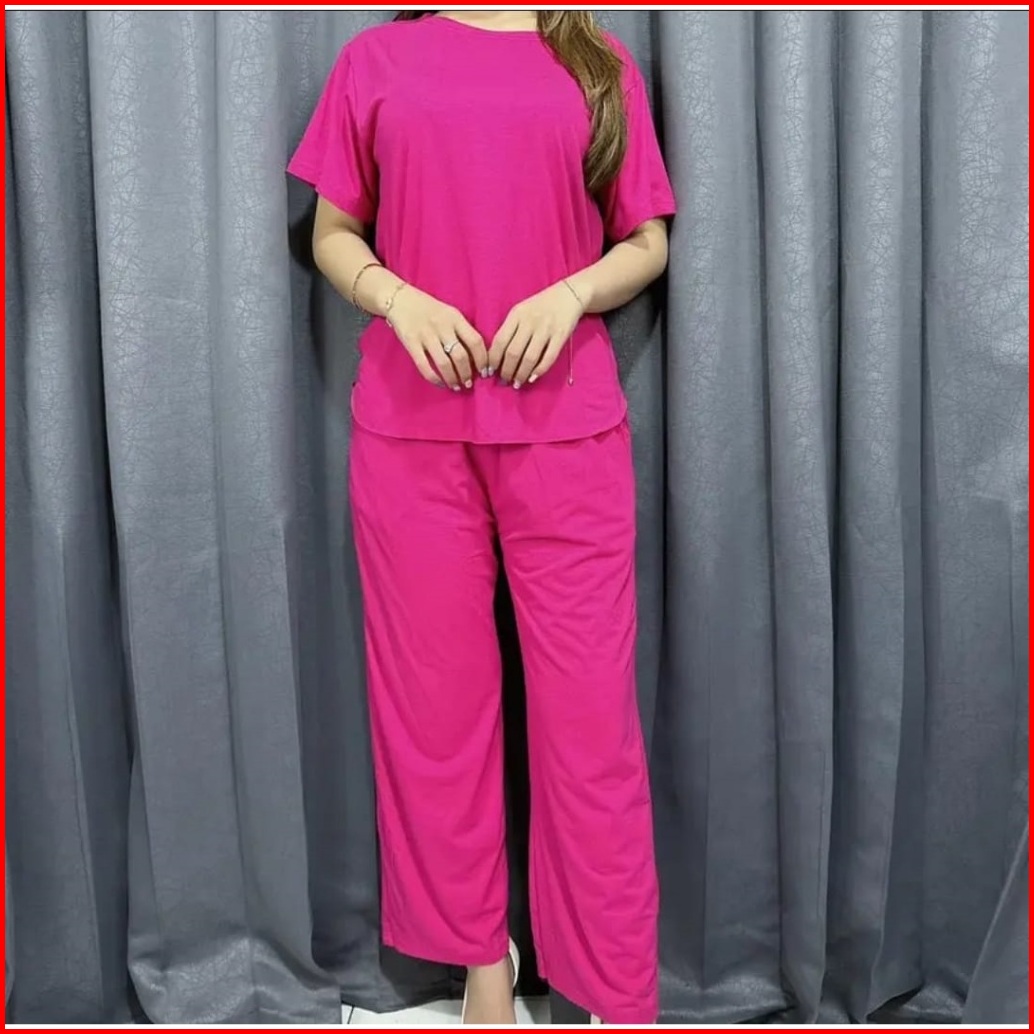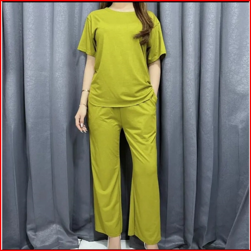 Setelan Celana Panjang Atasan V Neck Jumbo Spandek Rayon - One Set Setcel Wanita Celana Panjang 6020