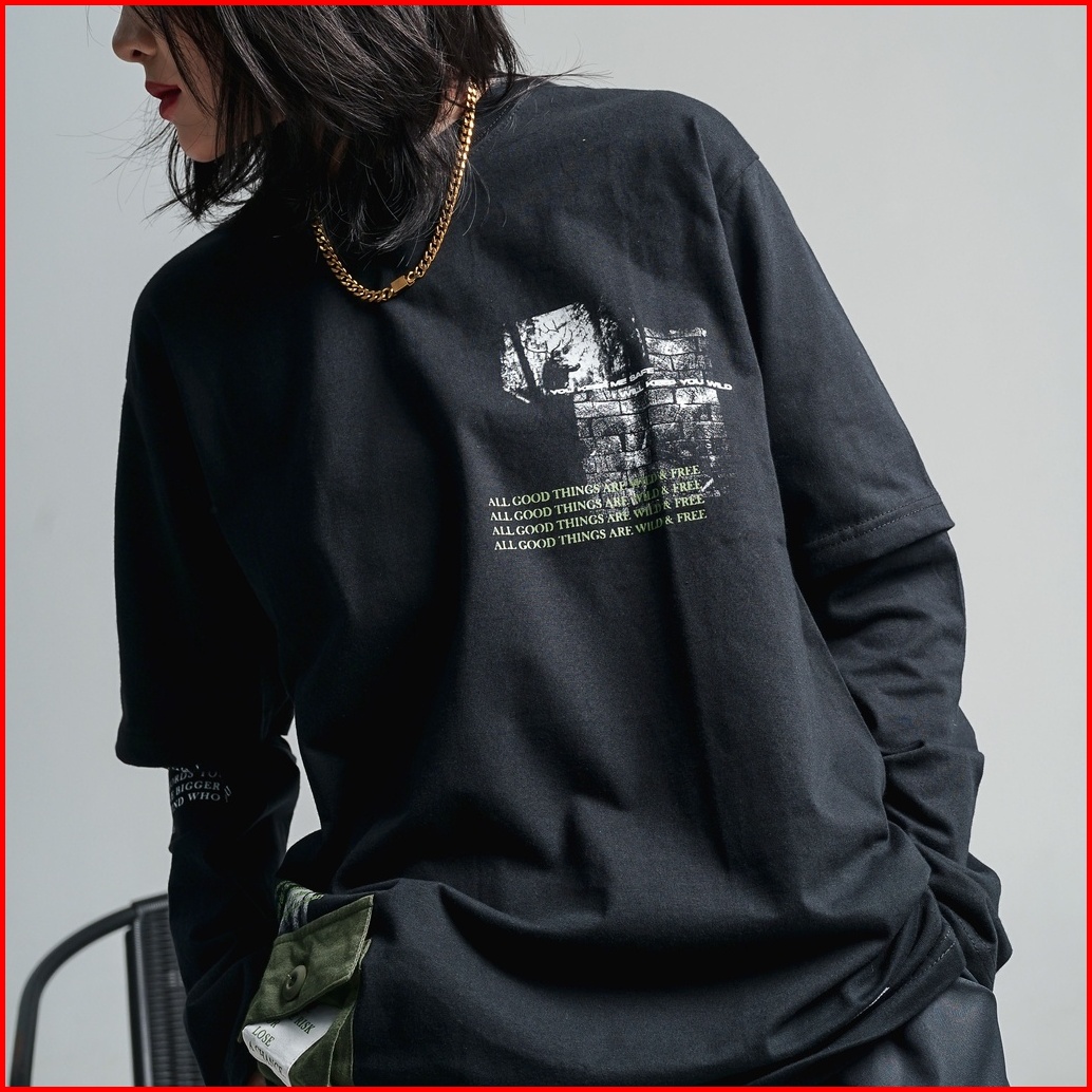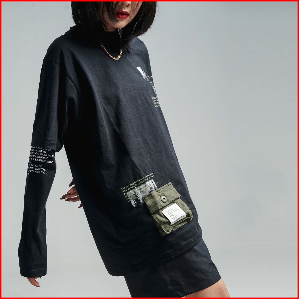 Mailo T-shirt Kaos Double Layer Oversize Longsleeve Hitam Outgrow
