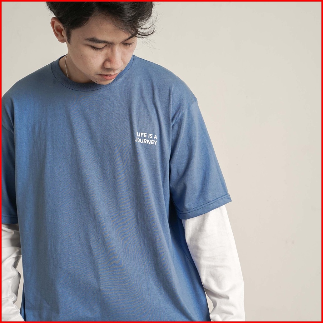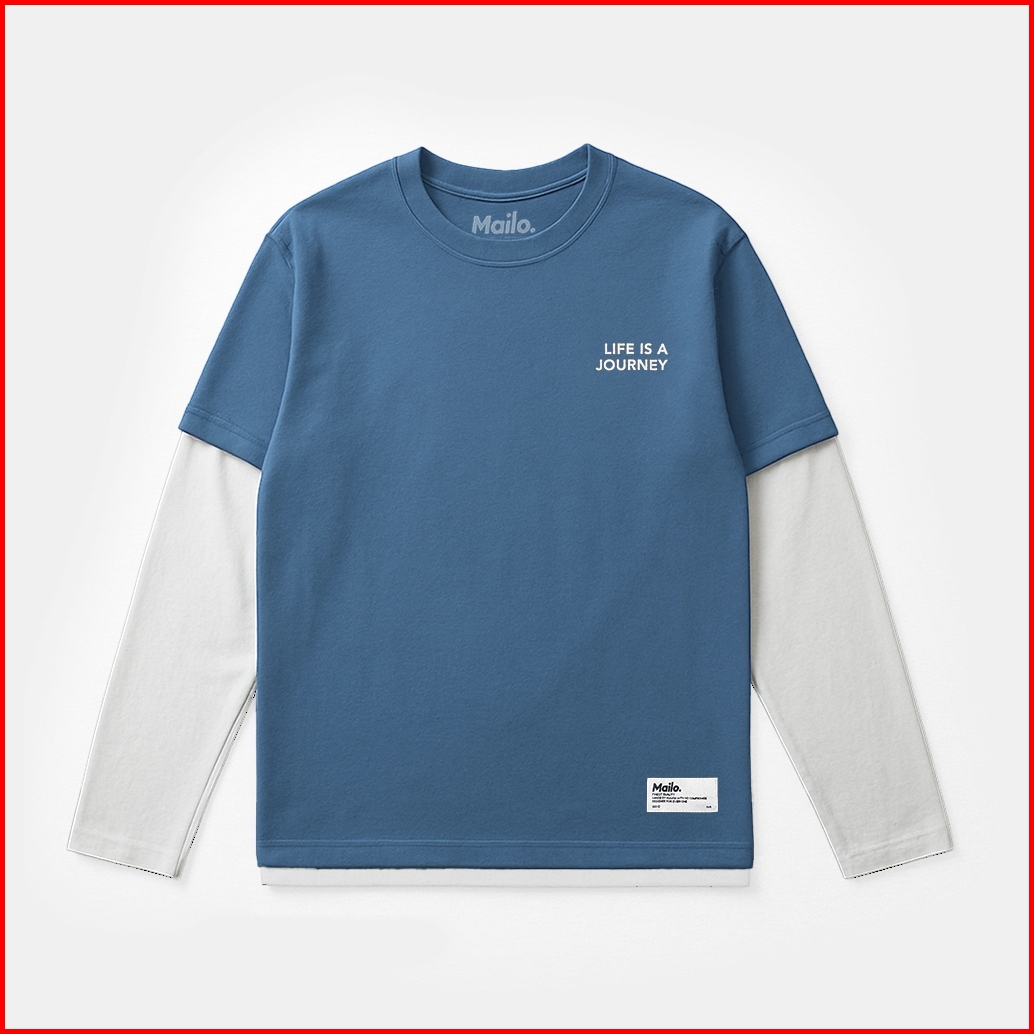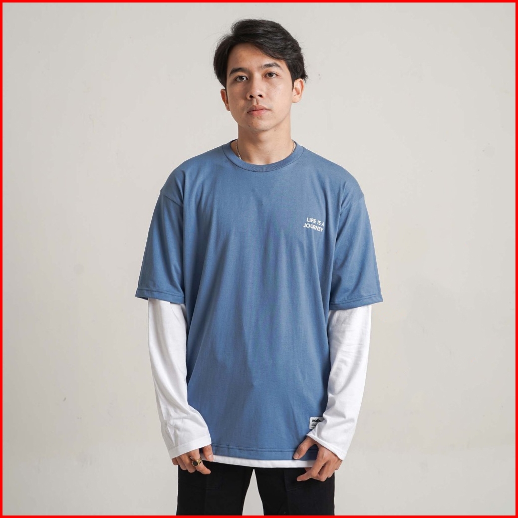 Mailo Oversized T-shirt Kaos Double Sleeve White Blue Life