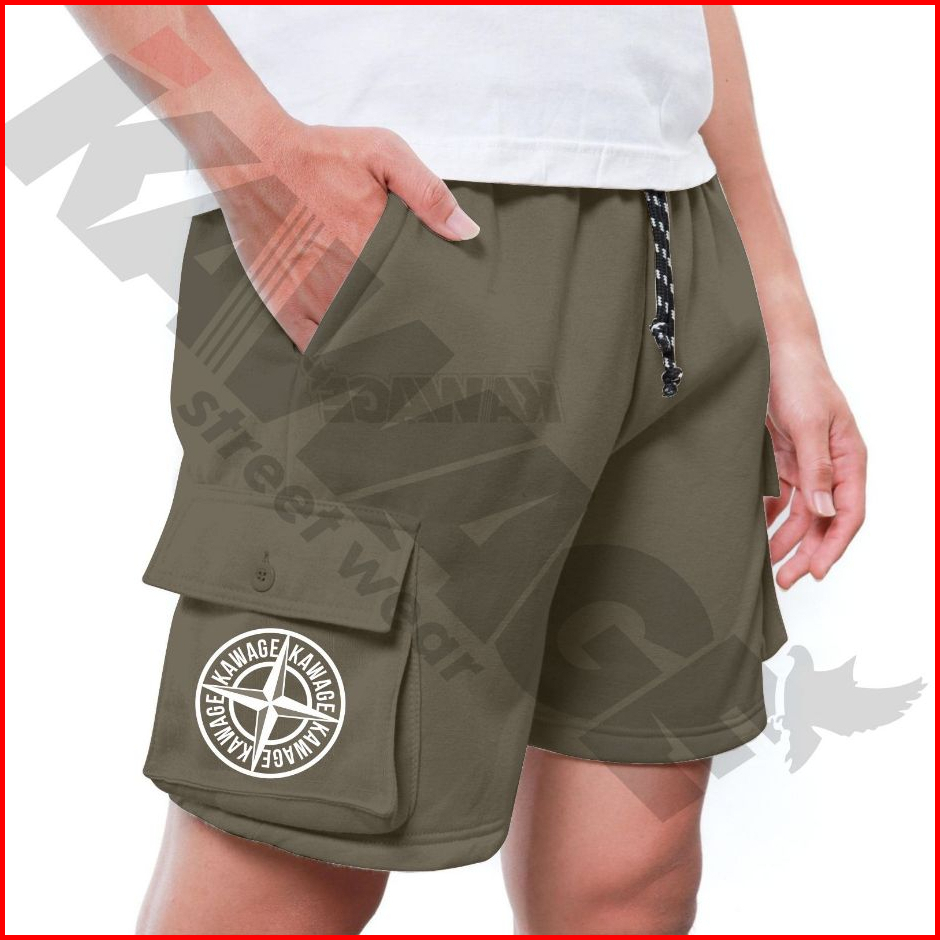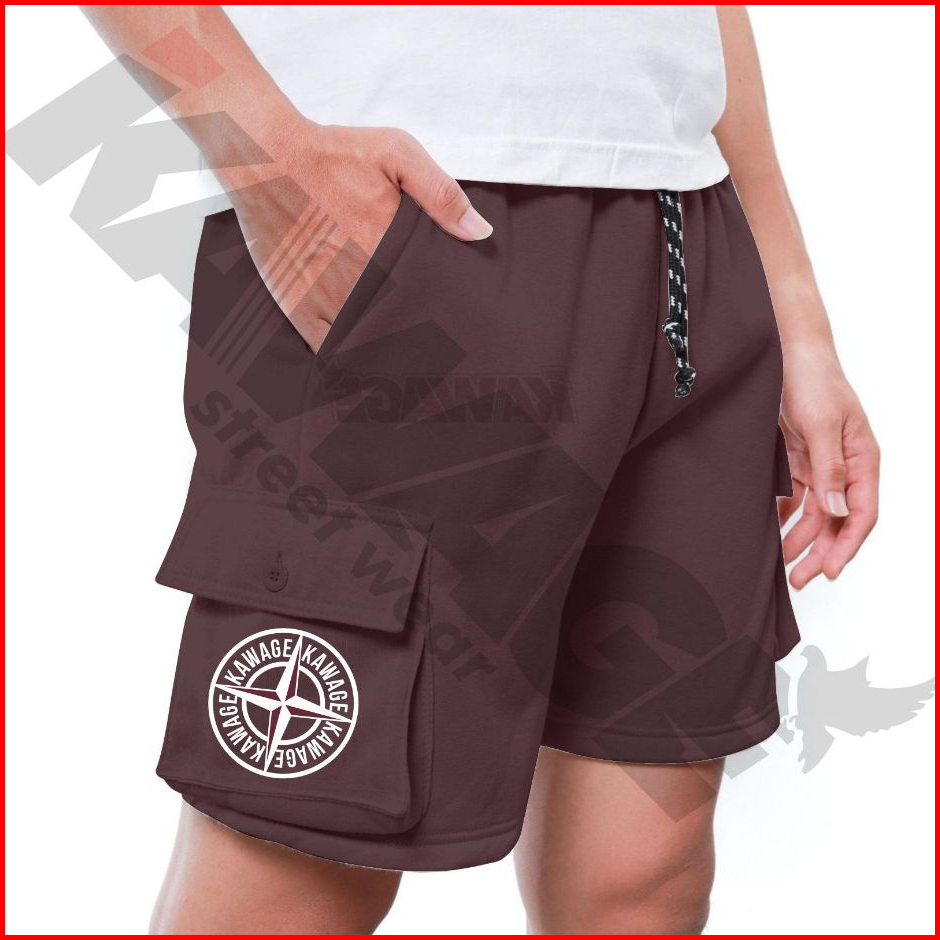 Kawage Celana Pendek Cargo Pria Wanita Shortpants Kargo Pendek Bahan Fleece Burgandy Motif Terbaru