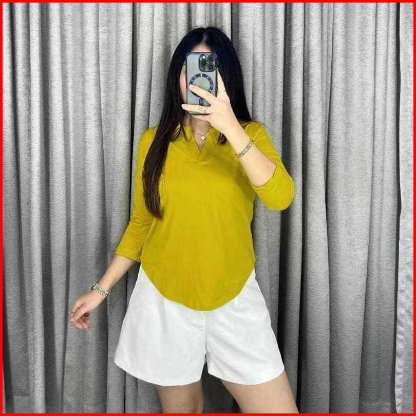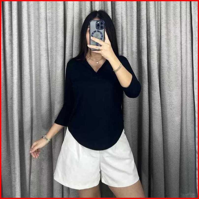 Atasan Kerah V Lengan Panjang - Atasan Kaos Wanita Oversize Jumbo V-neck Lengan 3 4 - 6063