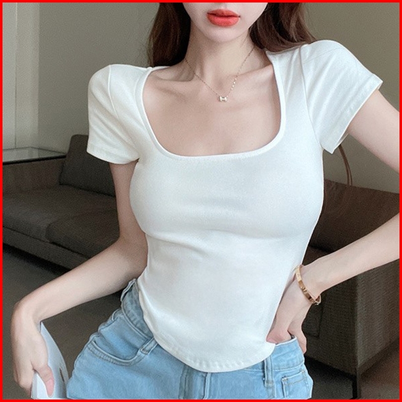 Casual Women S Square Neck Basic Crop Top Shirt 1547 S-xl