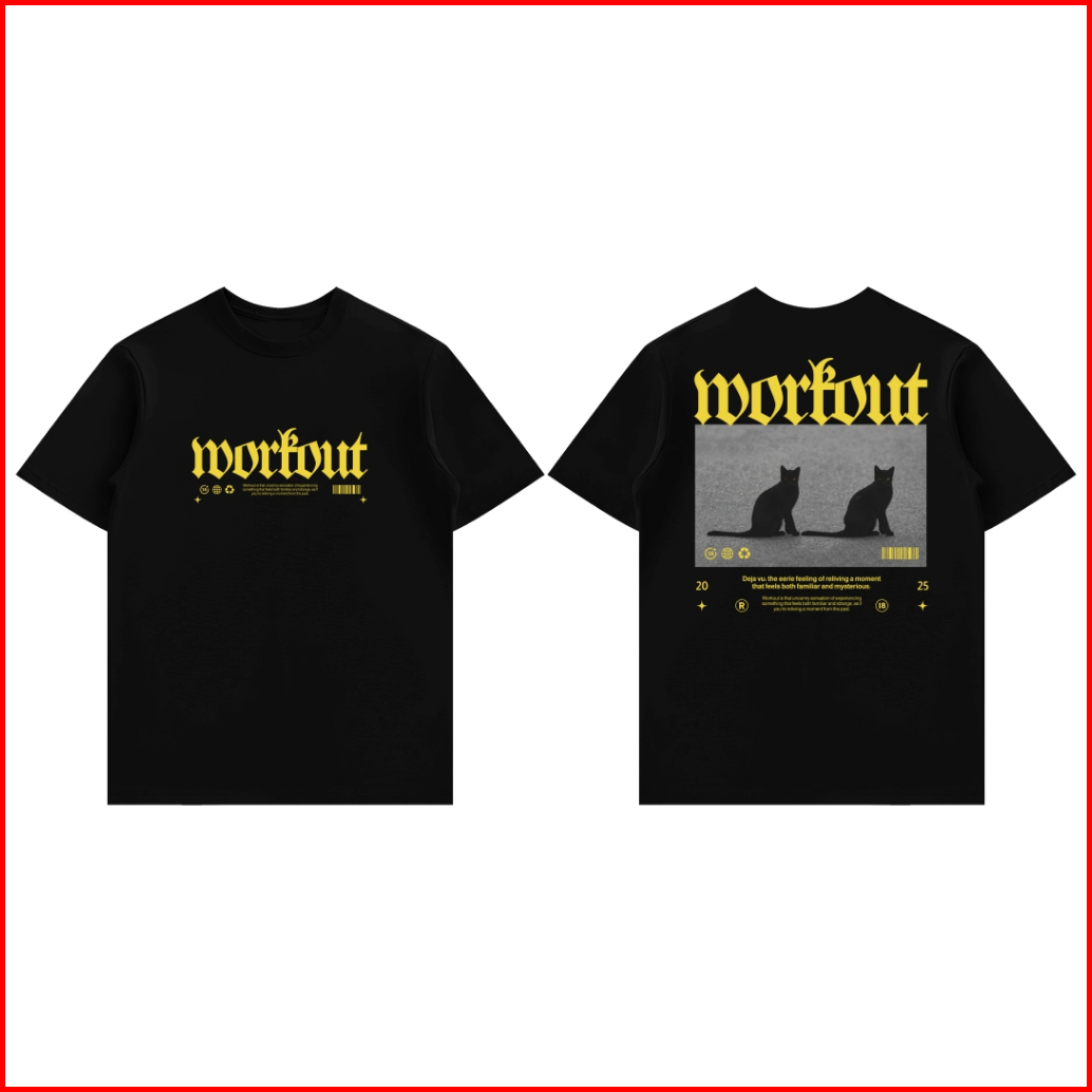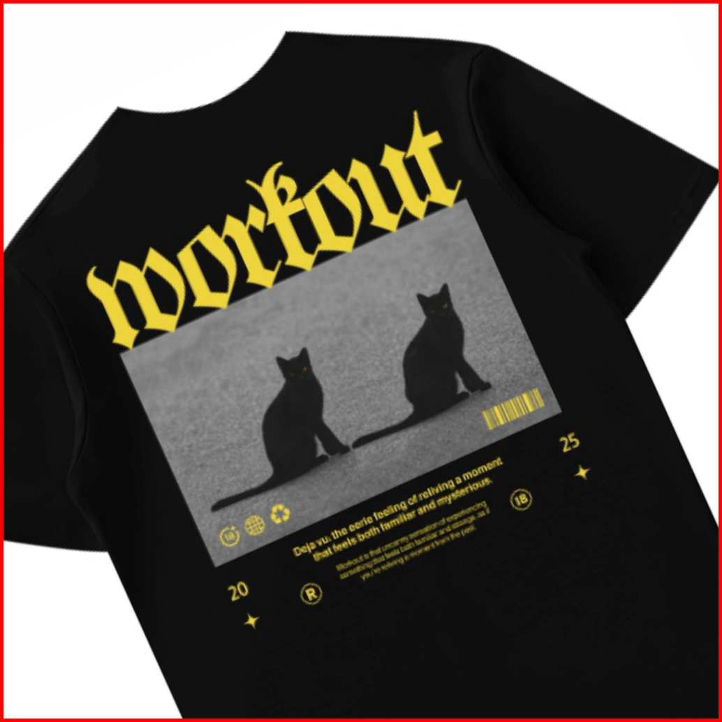 Workout Streetwear X Scribbles Kaos Tshirt Distro Black Cat Hitam