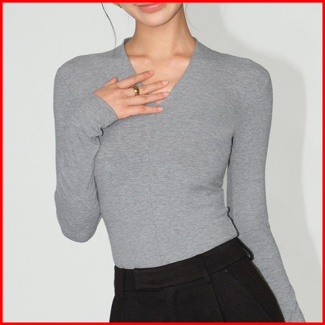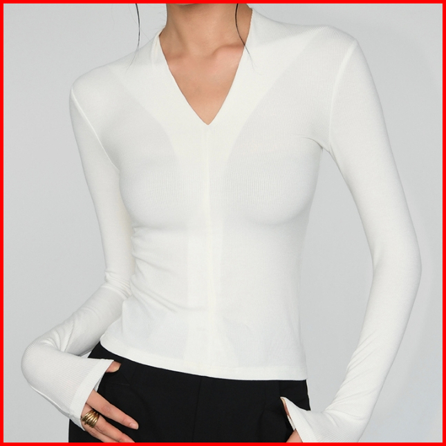 Women T Shirt V-neck Long Sleeve Slim Fit 3359 S M L Xl