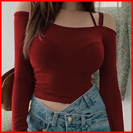 Halter Neck Off Shoulder Long Sleeve Crop T-shirt 1763 S M L Xl