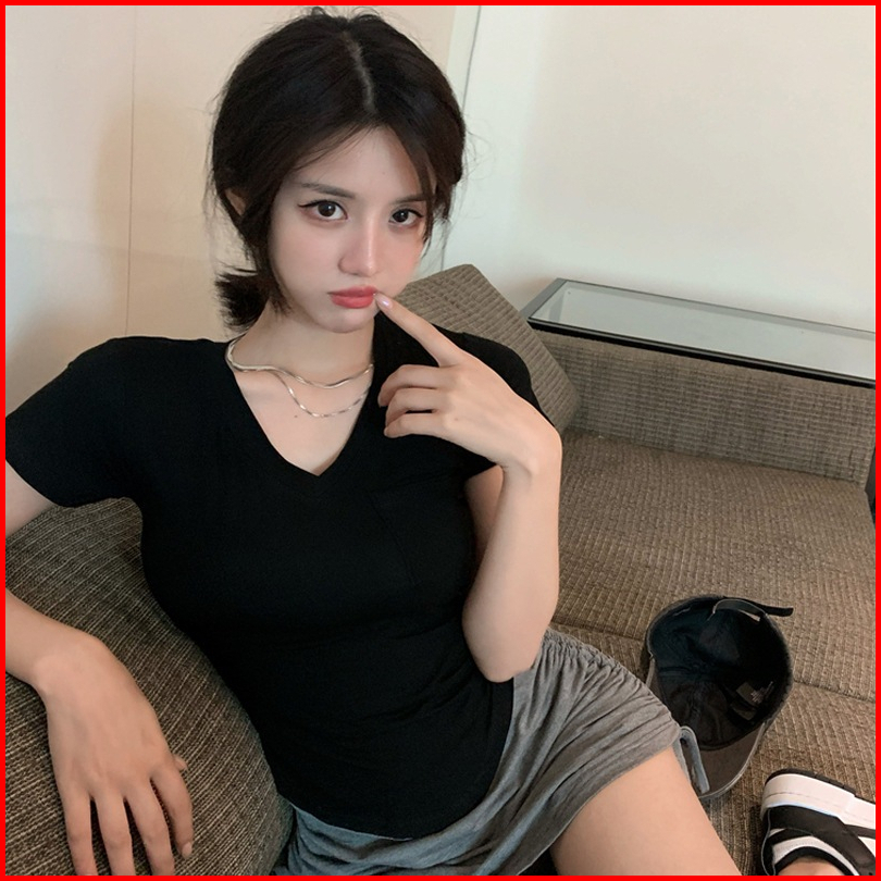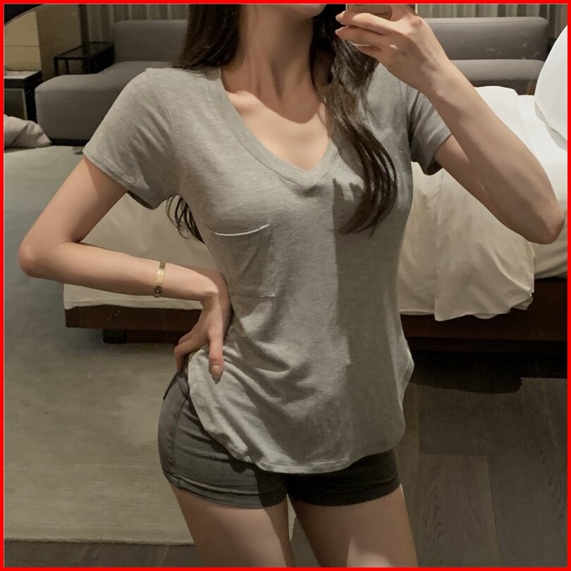 Premium Women T-shirt V Neck Short Sleeve Pocket 3294 M L Xl