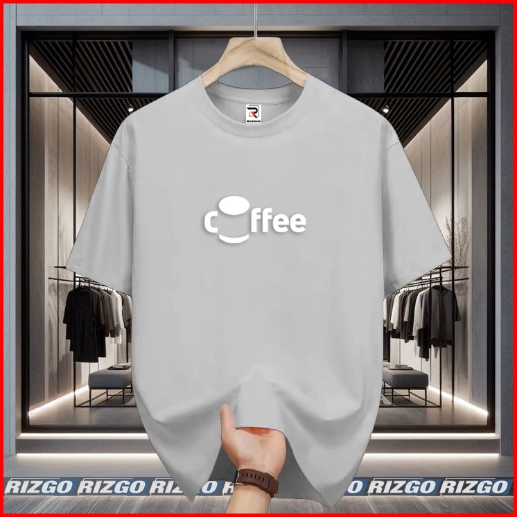 Rizgo - T Shirt Kaos Pendek Coffe Motif Putih Casual Bahan Katun 24s Tebal Nyaman Oblong