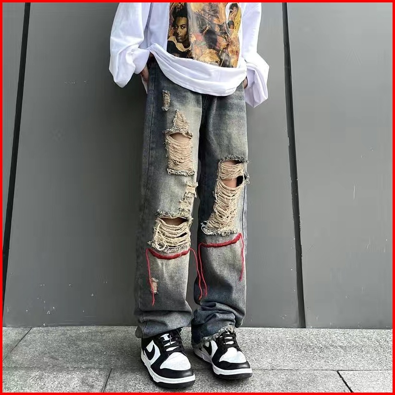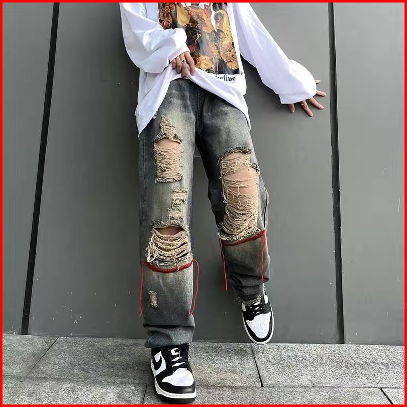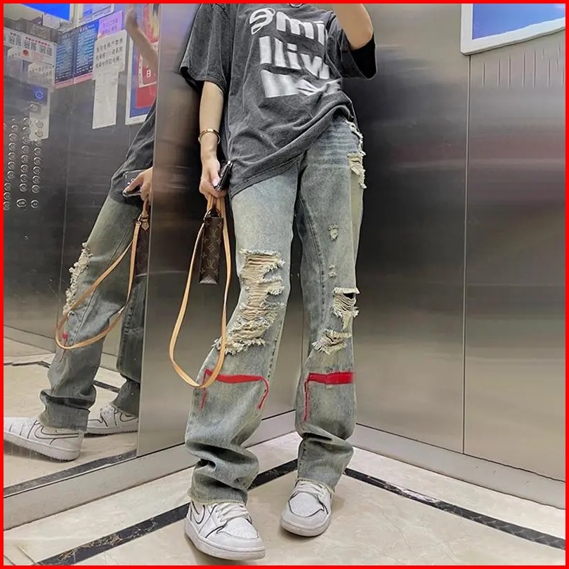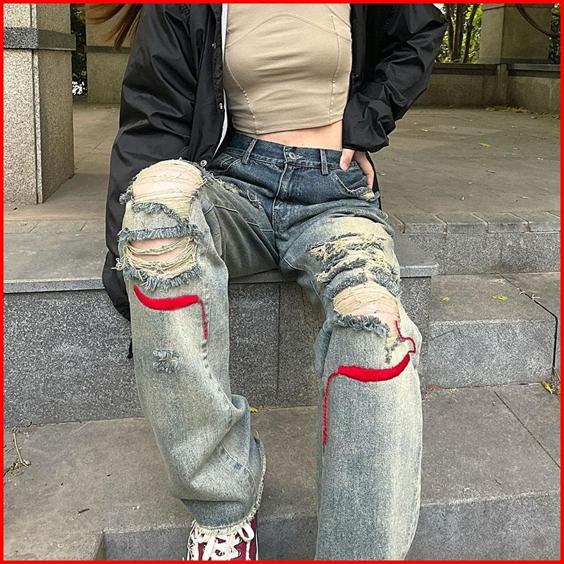 Yuruma Versi Korea Dari Kepribadian Retro Amerika Hip-hop Ins Celana Jeans Tua Robek