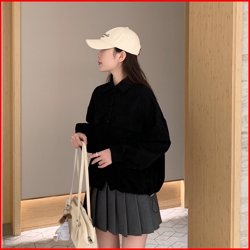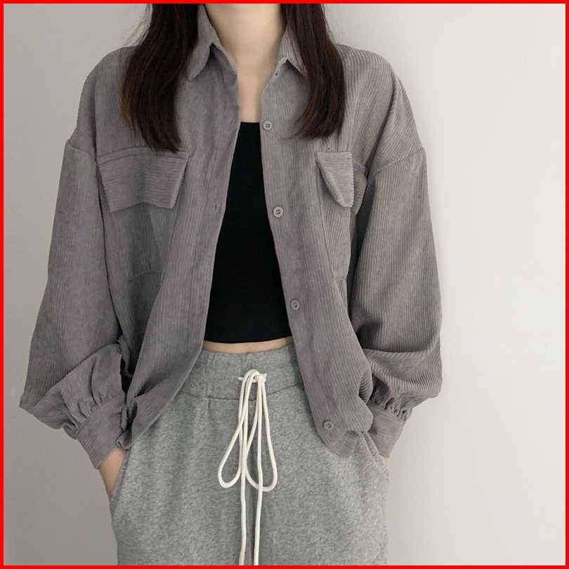 Yuruma Kemeja Korduroi Retro Gaya Korea Kemeja Kardigan Pendek Longgar