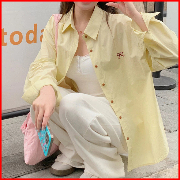 Yuruma Blus Wanita Korean Style Lengan Panjang Dengan Motif Kupu-kupu Gaya Kampus Santai
