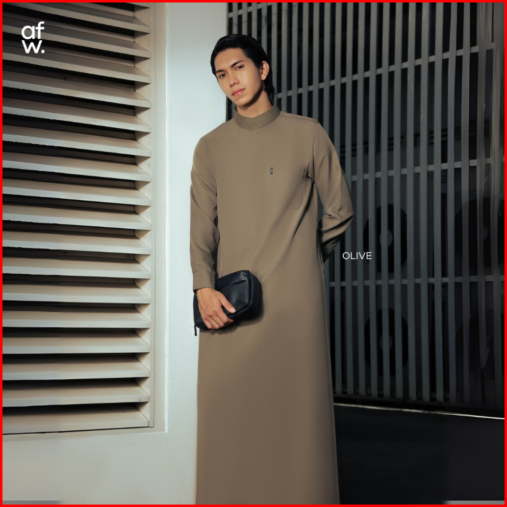 Zaheer Thobe Olive Jubah Gamis Slimfit Olive Pria Dewasa Premium Lengan Panjang