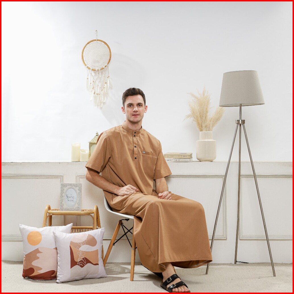 Delifaz - Jubah Gamis Pria Slimfit Lengan Pendek Bahan Katun Emboss El-hafaz - All Varian