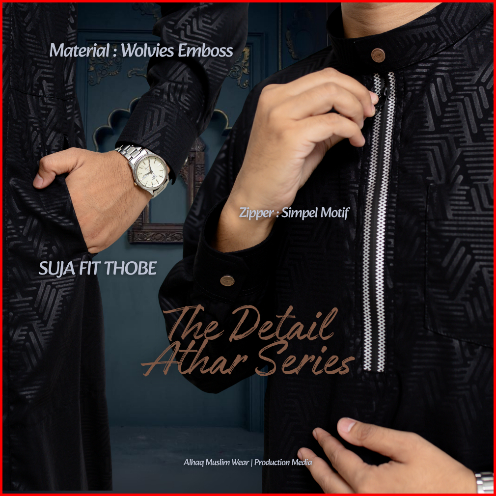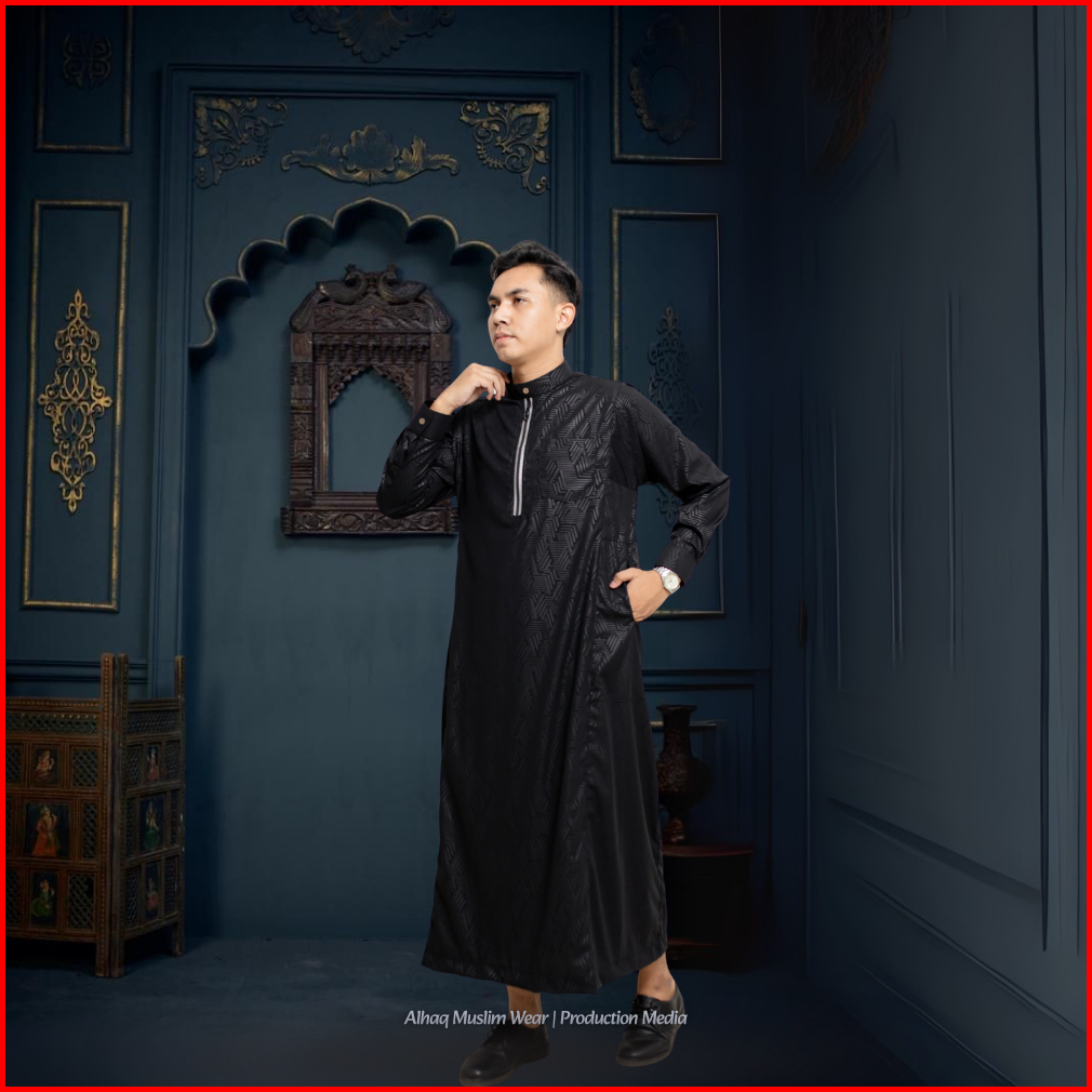 Al Haq Jubah Gamis Pria Jubah Premium Muslim Saudi Umrah Haji Motif Embos Zipper Slimfit Hitam 01 02 03