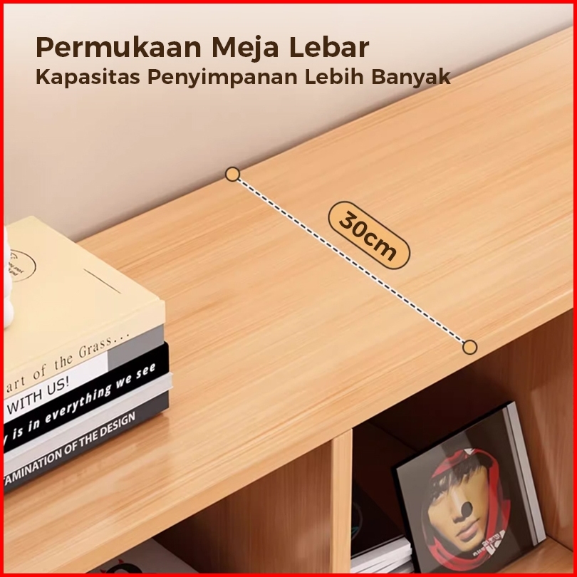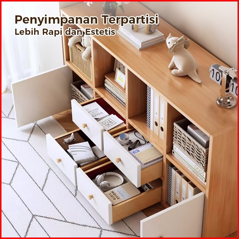 Antsun Rak Buku Kayu 8 Ruang Lemari Buku Kayu Rak Pajangan Rak Serbaguna Lemari Lantai Ruang Tamu