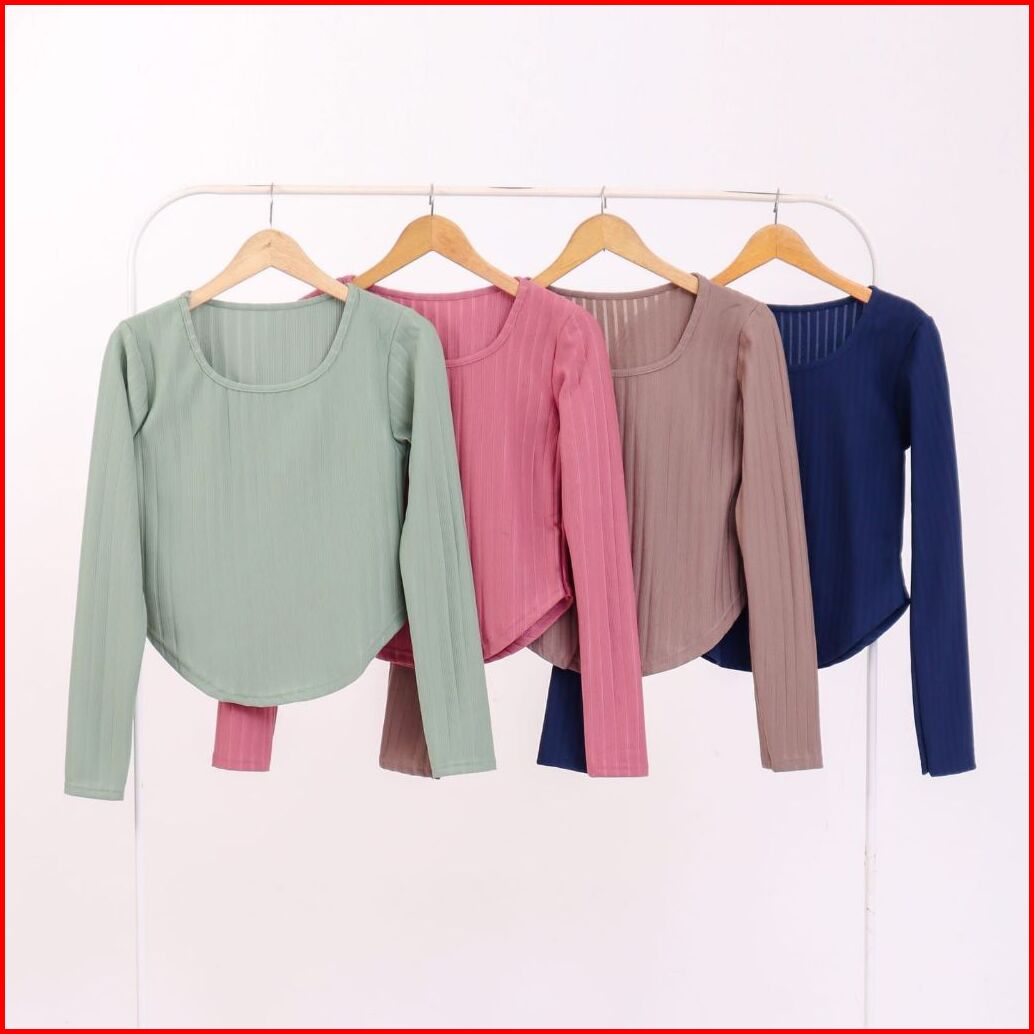 Atasan Rib Knit Lengan Panjang Wanita - Fashion Korea Basic Oval Rib Knit Sweater 6024-1