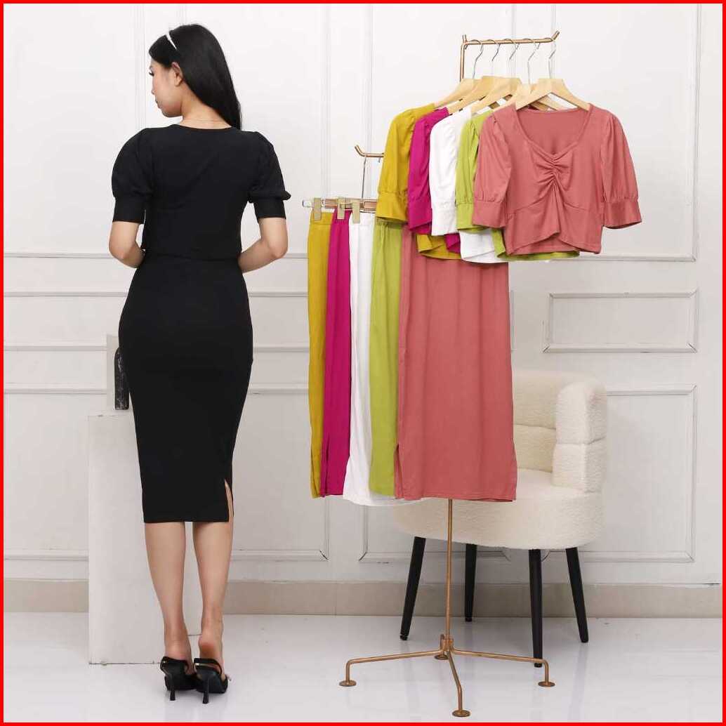 Setelan Crop Top Rok Bodycon Korean Set Spandek Import - One Set Korean Style Wanita 6019