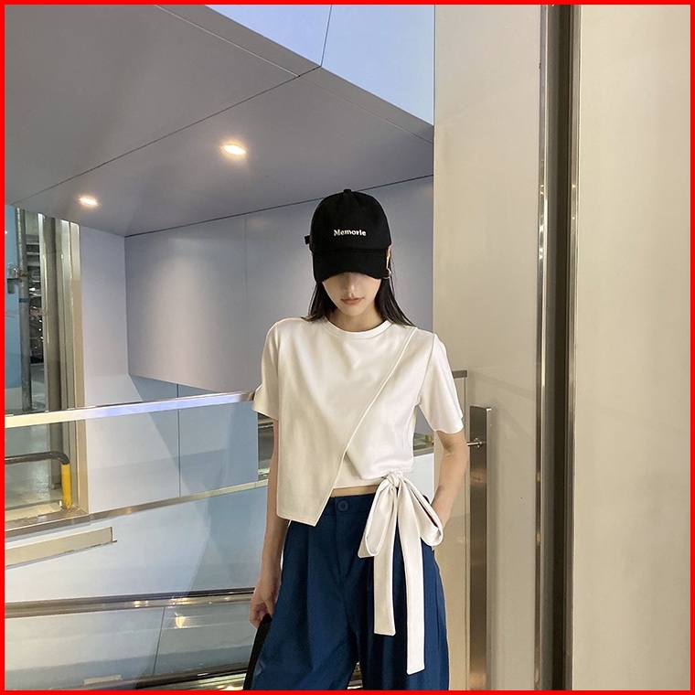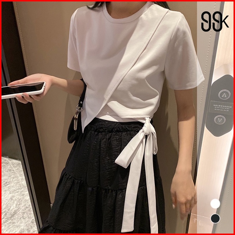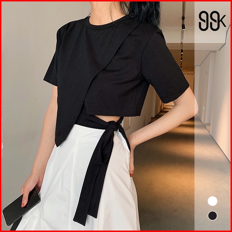 Round Neck T-shirt Crop Top Asymmetric 1345 S-xl