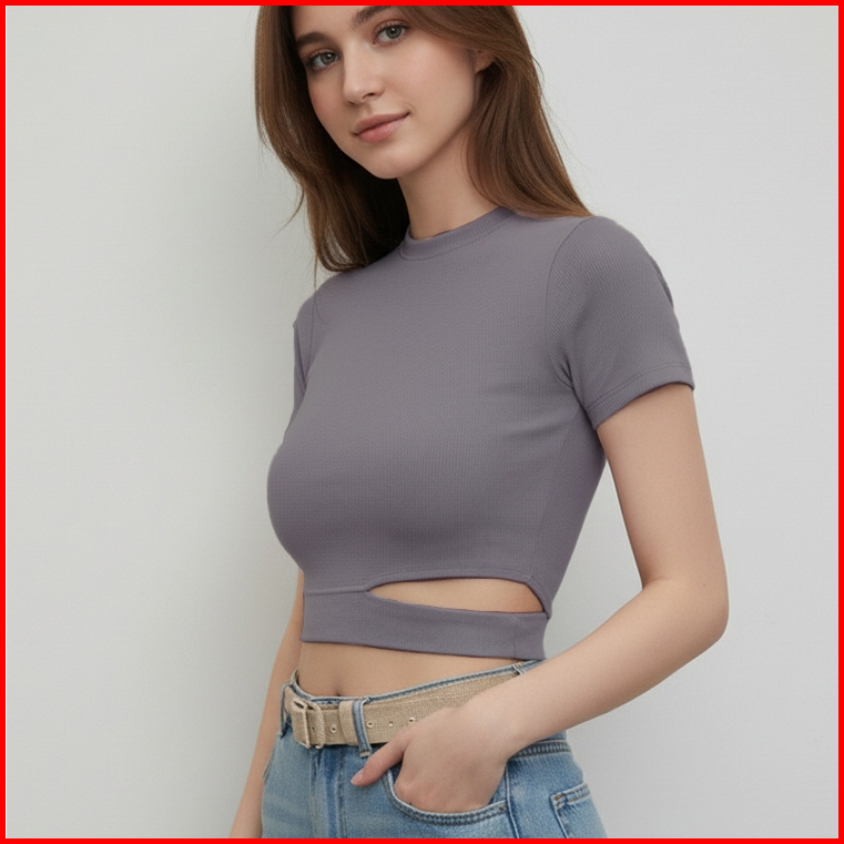 99koutlet Baju Wanita Lengan Pendek Crop Top Polos Crew Neck Cut Out S M L Xl 3343 T-shirt Women Plain Hitam Atasan Shor