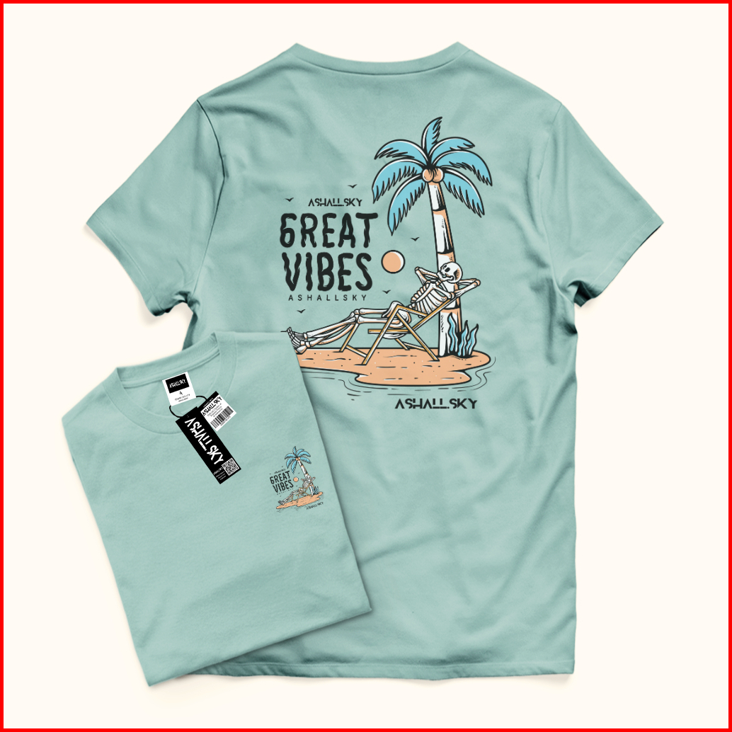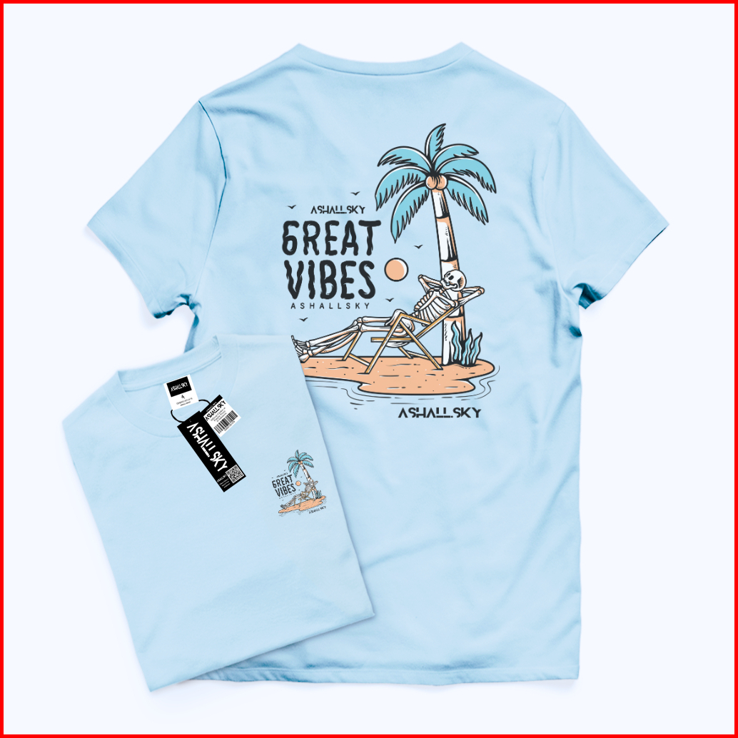 Hot Kaos Distro Pria Lengan Pendek Sablon Great Vibes Kaos Pria Wanita Warna Putih Bahan Katun