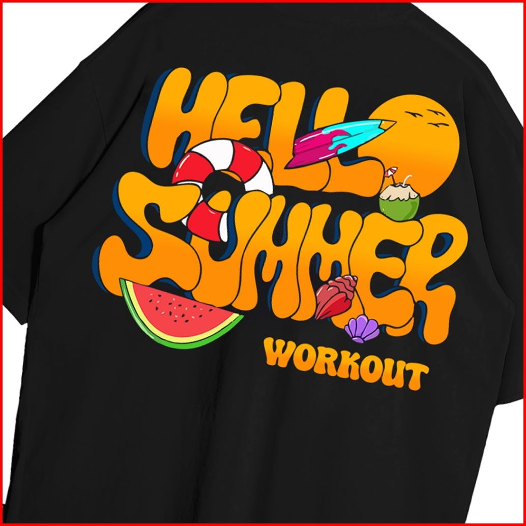 Workout Stretwear Kaos Tshirt Oversize Workout Basic Hello Summer