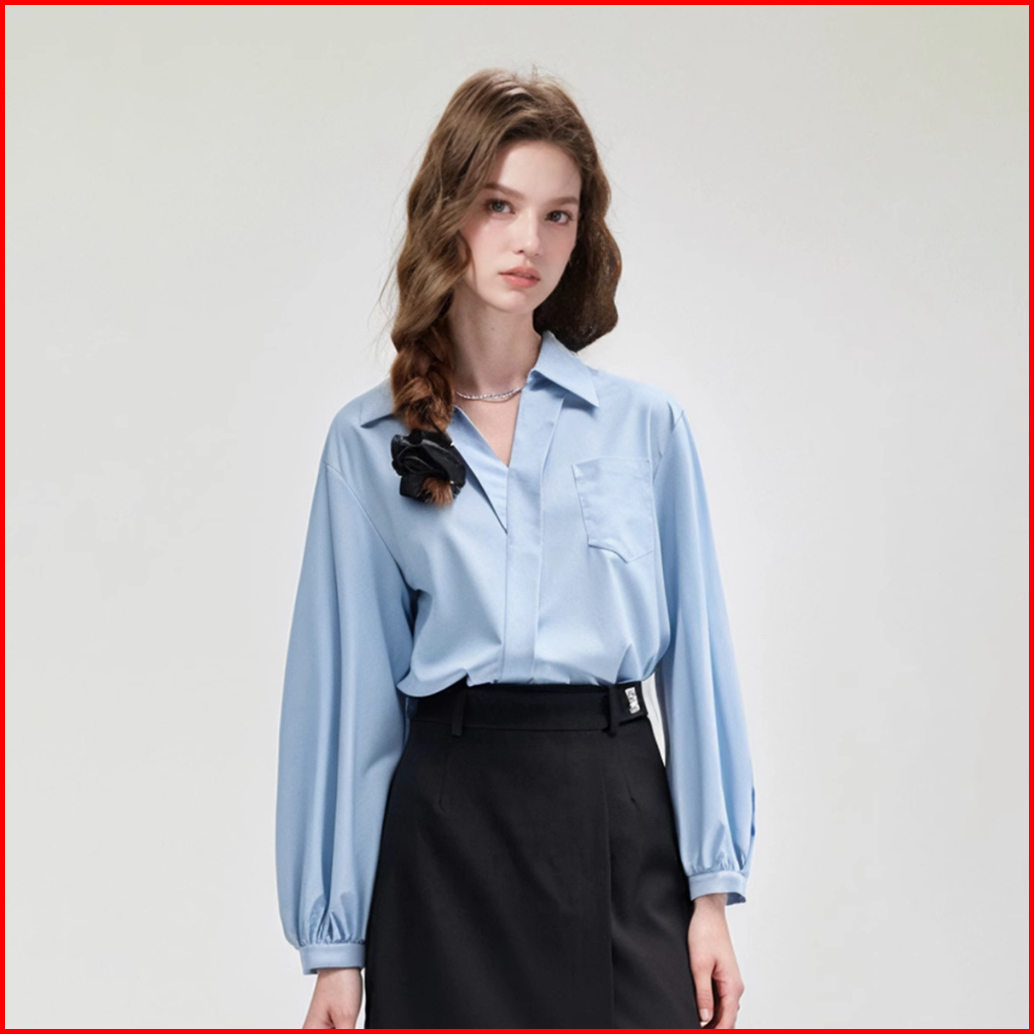 Yuruma Kemeja Lengan Pendek V-neck Gaya Korea Baru Atasan Longgar Lengan Setengah Temperamen Prancis