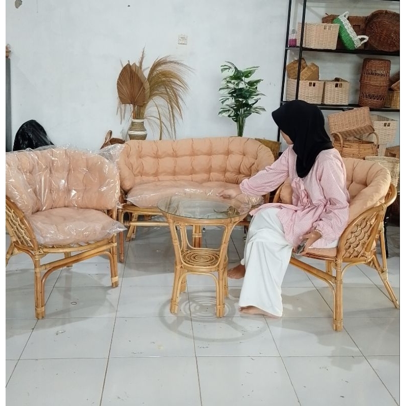 Set Ruang Tamu Rotan Alami Bahama (2 Kursi + Sofa + Meja) Kualitas Ekspor