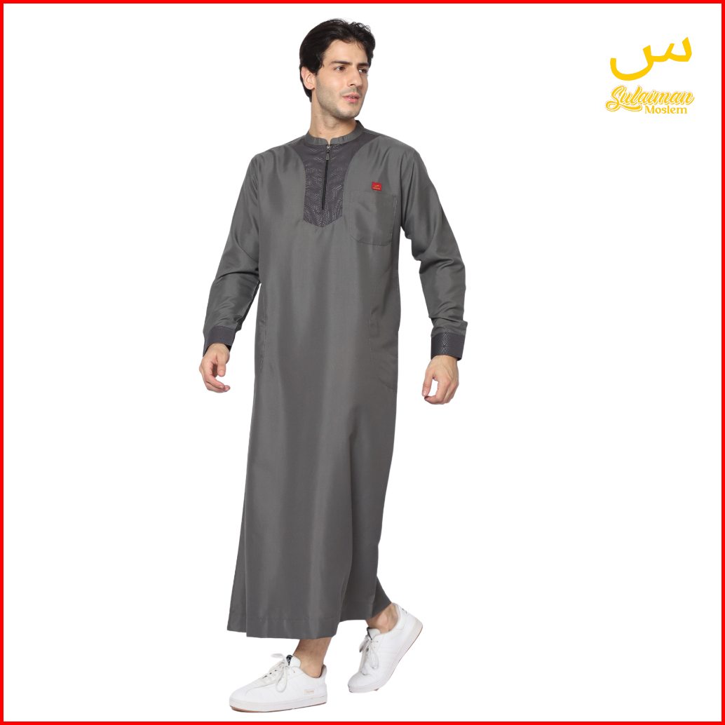 Sulaiman Moslem - Jubah Sholat Pria Lengan Panjang Poly Emboss Abu Tua - Dark Grey