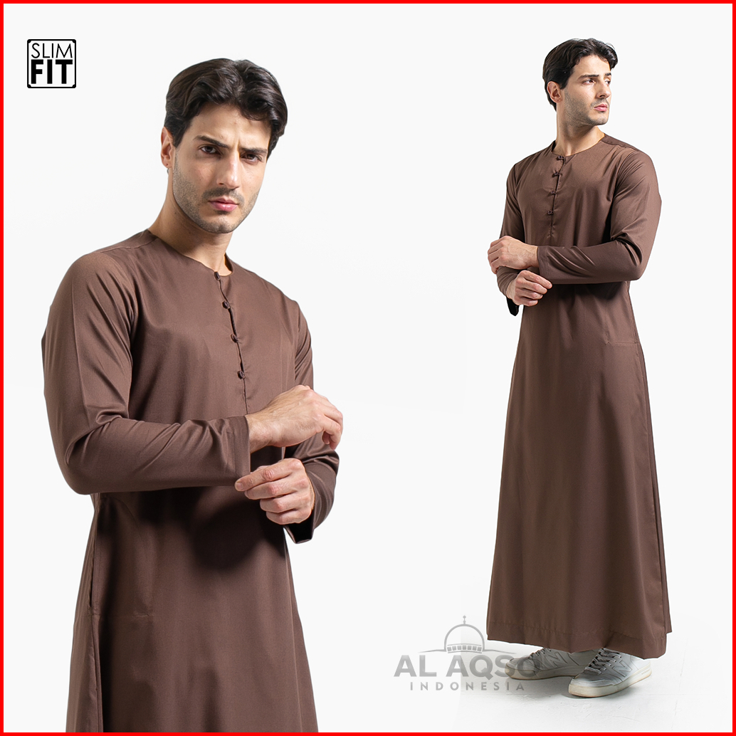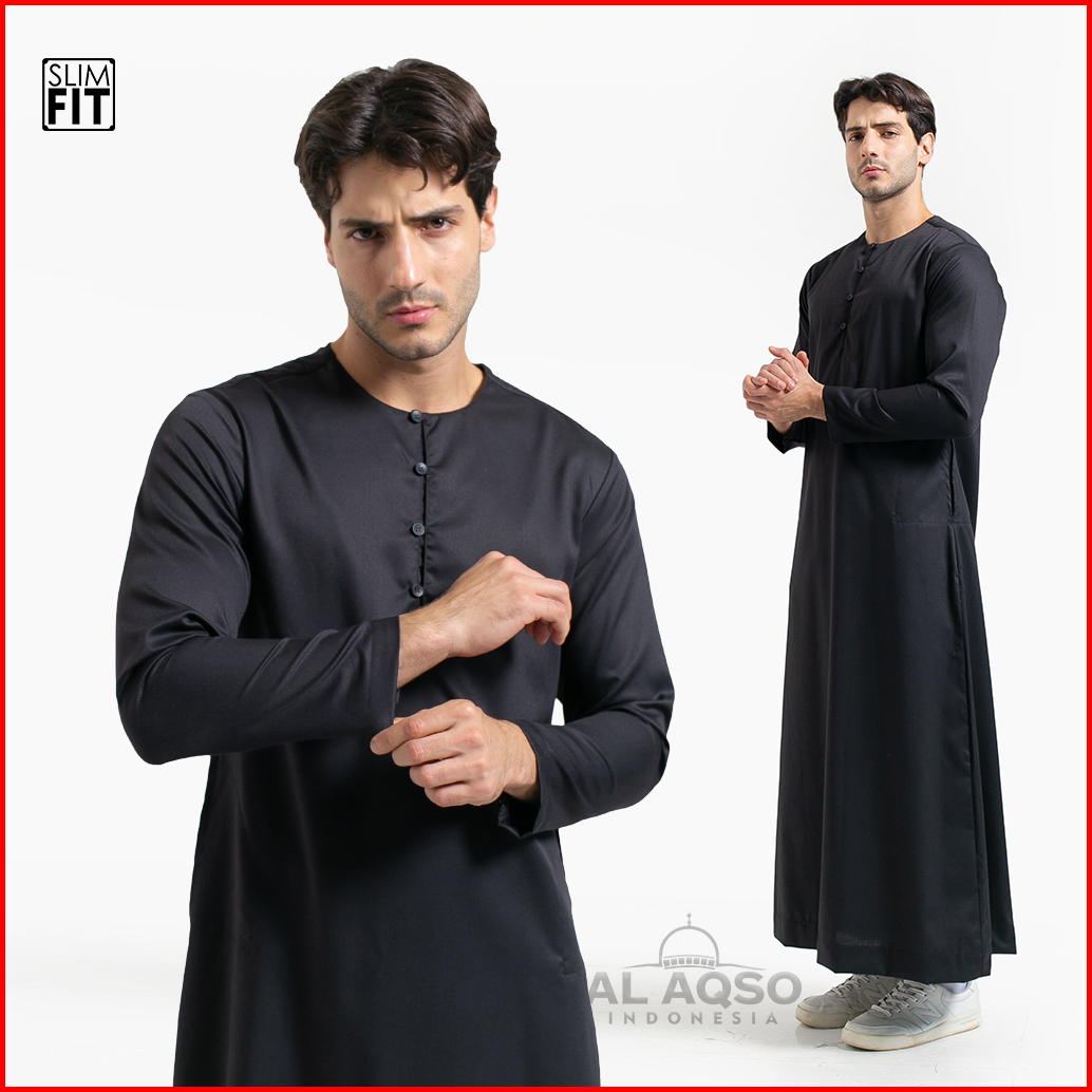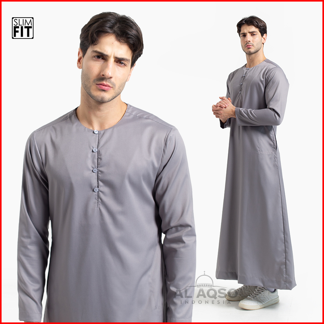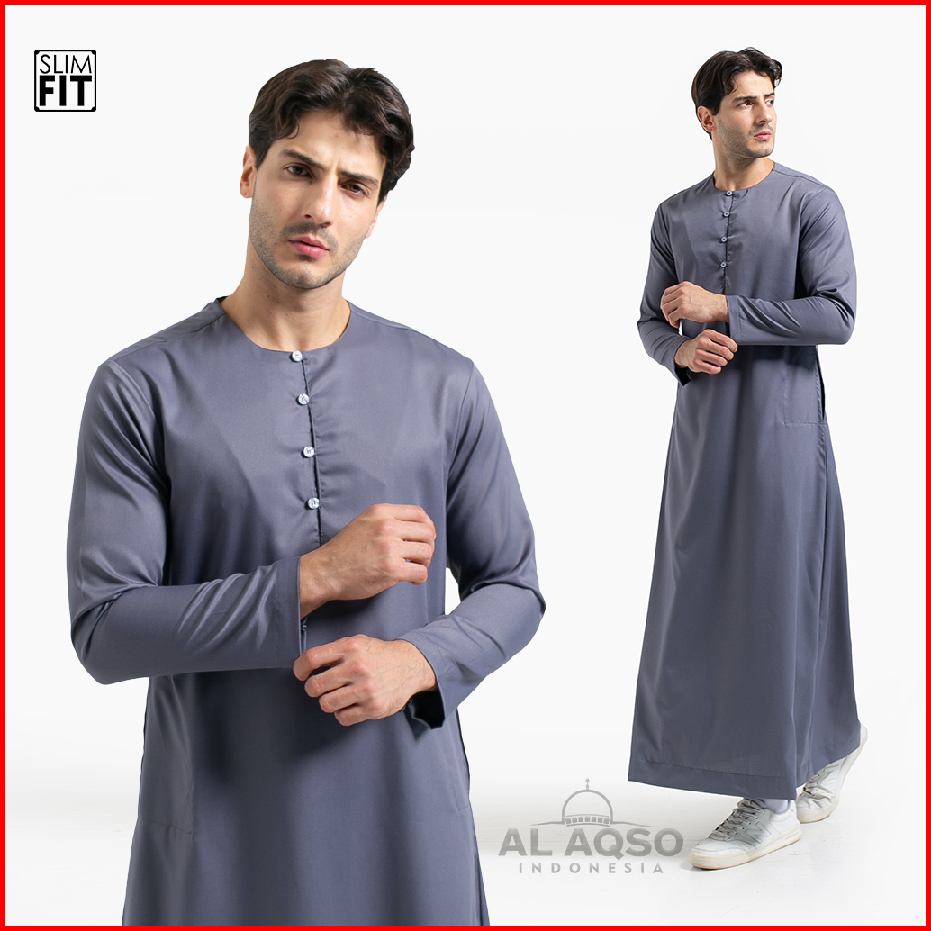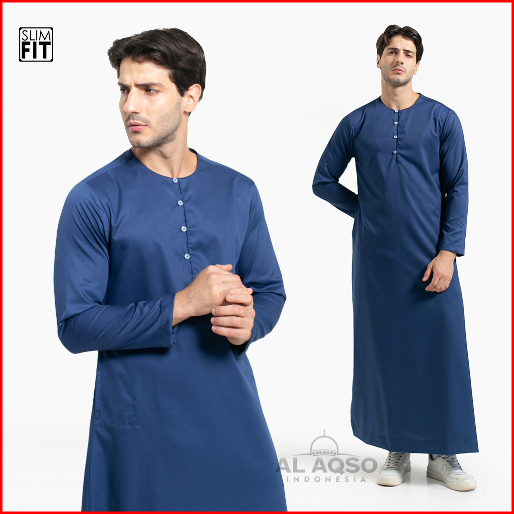 Al Aqso Fodu Jubah Slimfit Thobe Gamis Pria Muslim Dewasa Premium Navy Abu Hitam Lengan Panjang Jubah Khairy