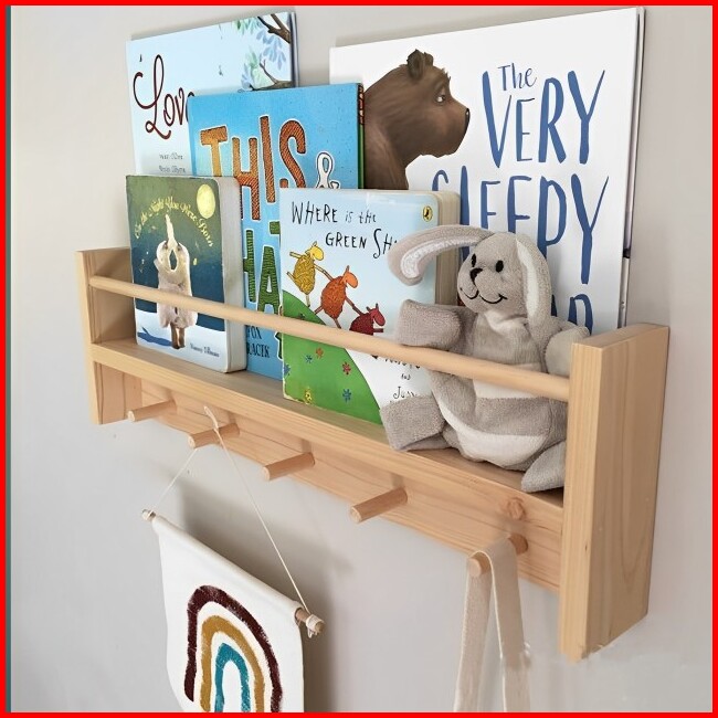 Rak Buku Serbaguna Minimalis Kayu Solid Tempel Dinding Tembok
