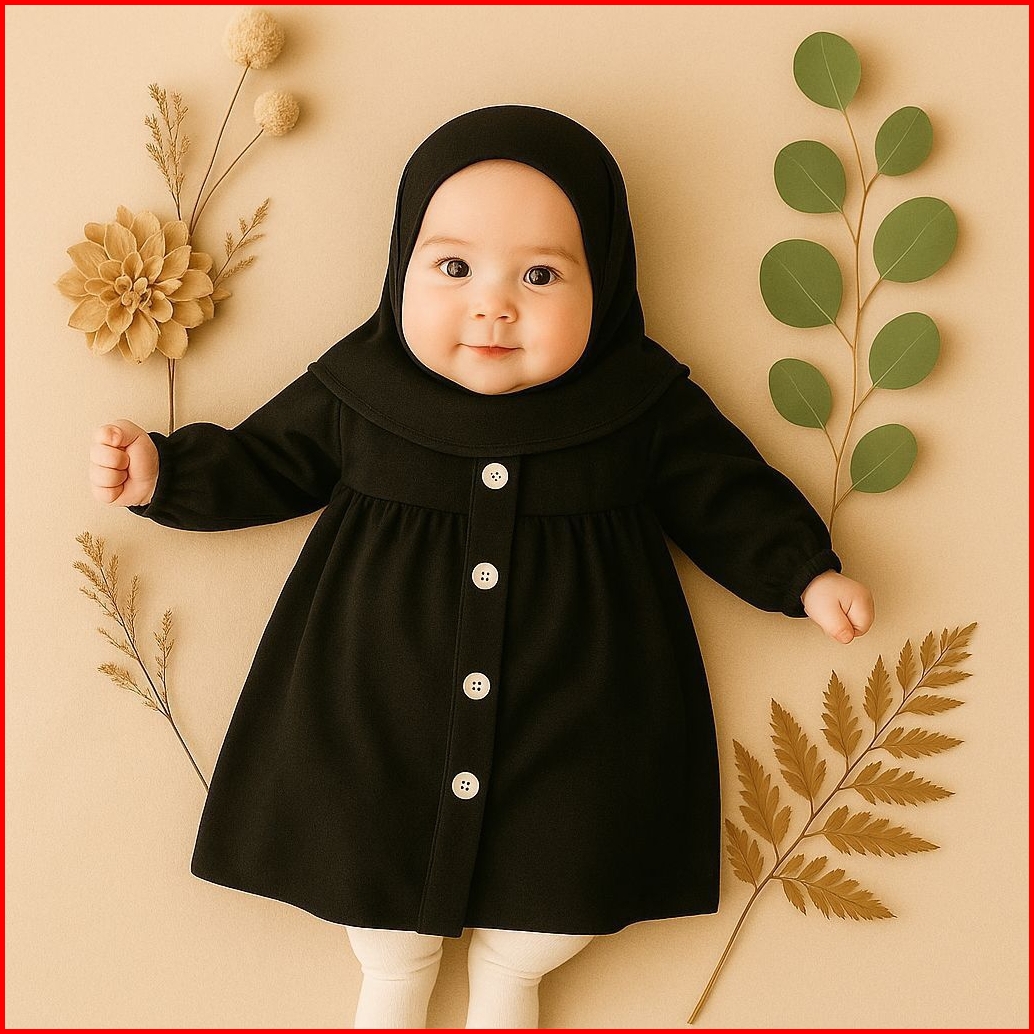 Gamis Bayi Perempuan Usia 0-18 Bulan Setelan Dres Hijab Abaya