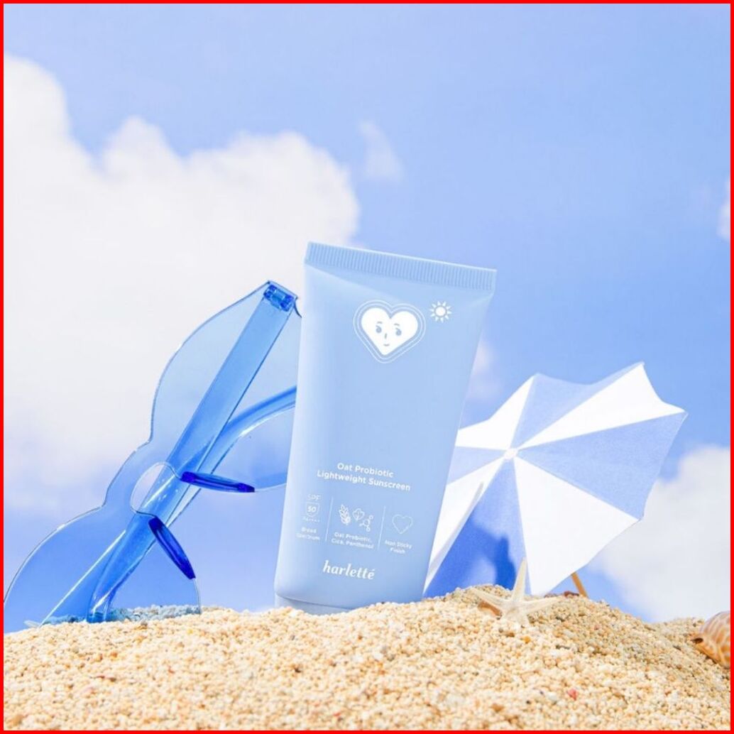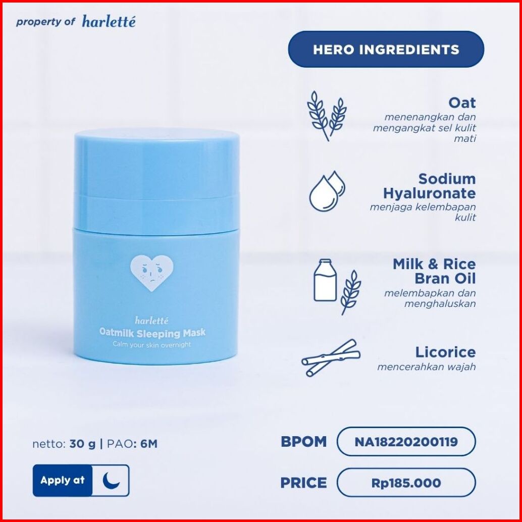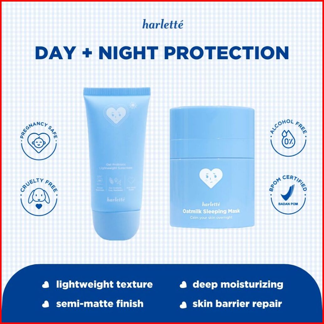 2 Pcs Bundling Sunscreen Harlette Oat Probiotic Lightweight Sunscreen 40 G Oatmilk Sleeping Mask 30 G