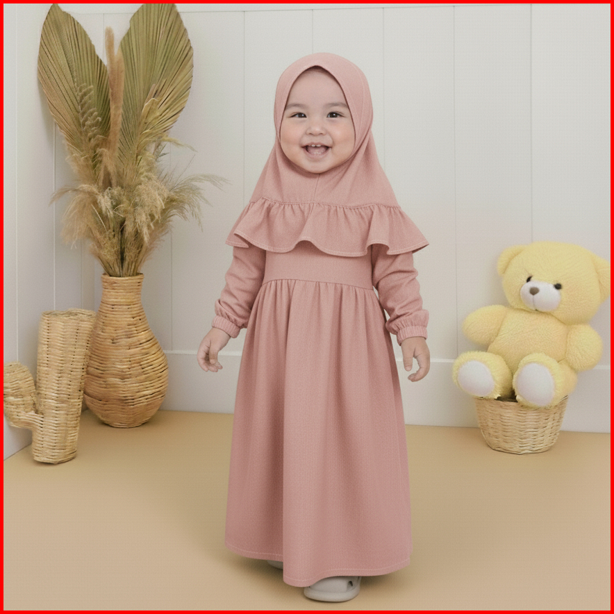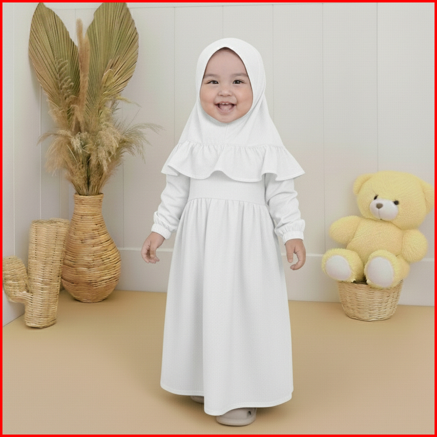 Kalissa - Gamis Newborn Perempuan 0 Bulan - 2 Tahun Polos Set Hijab