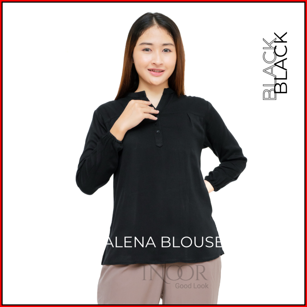 Alena Blouse Size Standar Dan Jumbo Cotton Twill Rayon Uniqlo Atasan Wanita Blus Kerja Blouse Polos Lengan Panjang