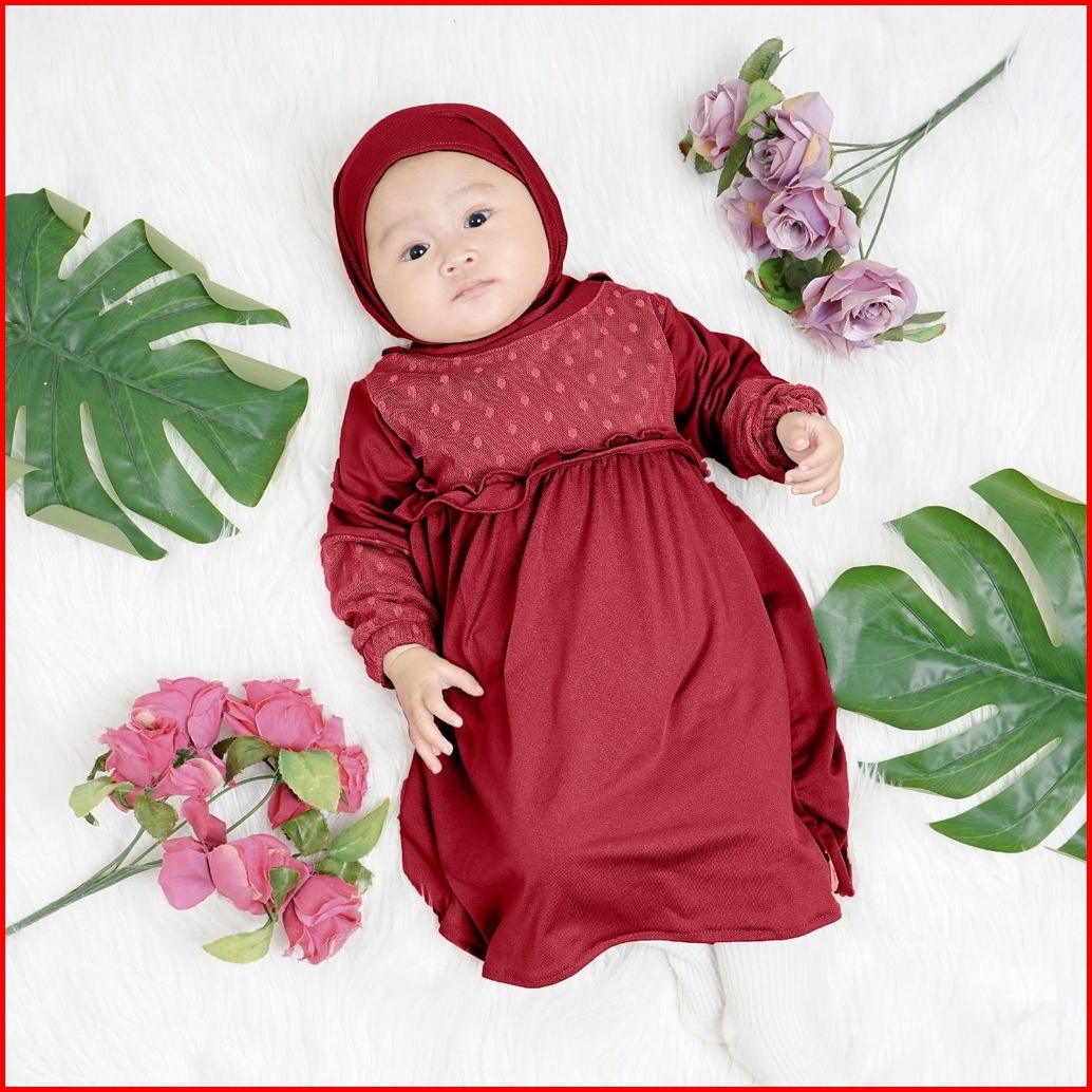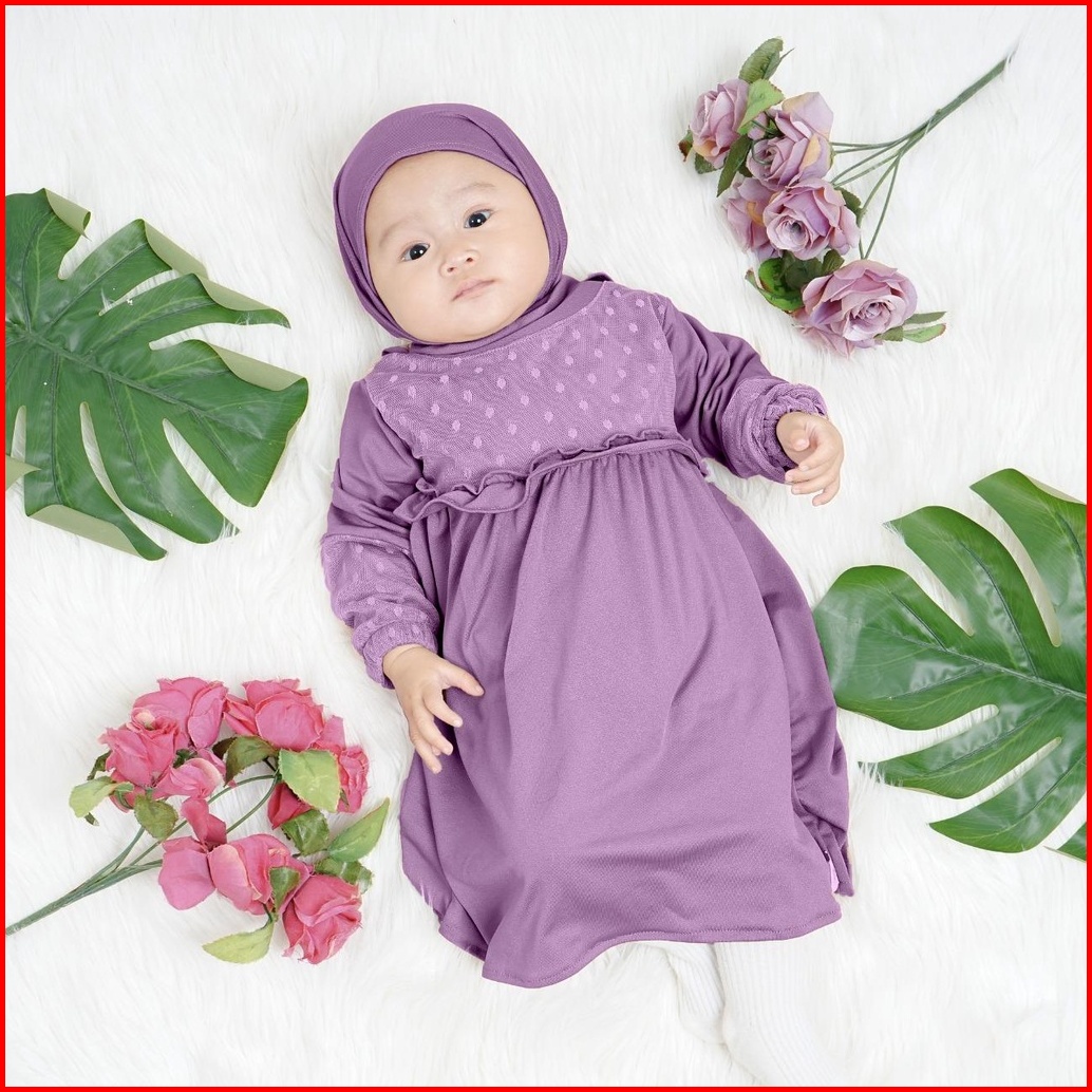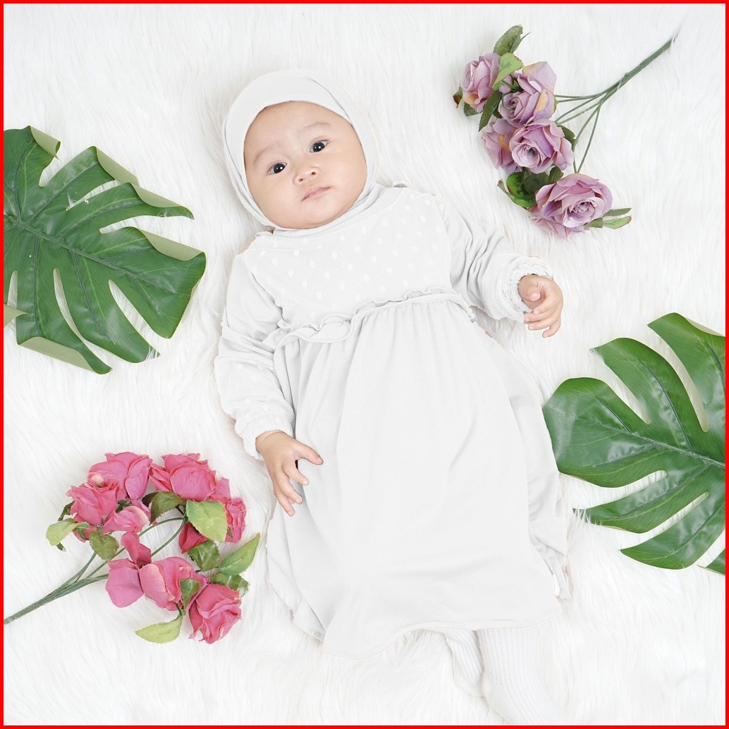 Gamis Bayi Perempuan Shabira Polka Dot 0-19 Bulan Free Hijab