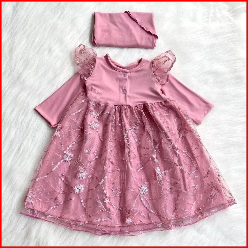 Gamis Bayi Set Hijab Gamis Muslim Gaun Brokat Mutiara
