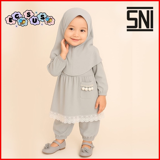 Egsus Setelan Gamis Hijab Alena Bayi Anak Balita Renda Katun Spandek Jersey 0-2 Tahun Pakaian Navy