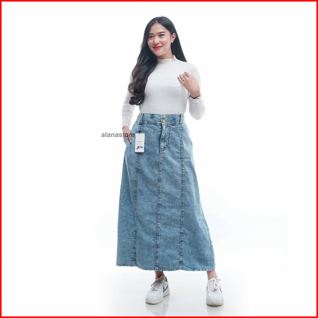 Jinie Jeans Rok Jeans Payung Bahan Halus Rok Jeans Highwaist A Line