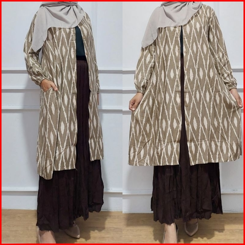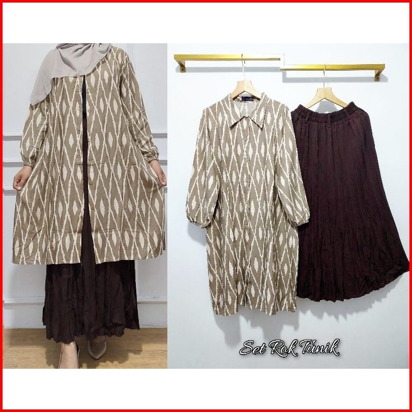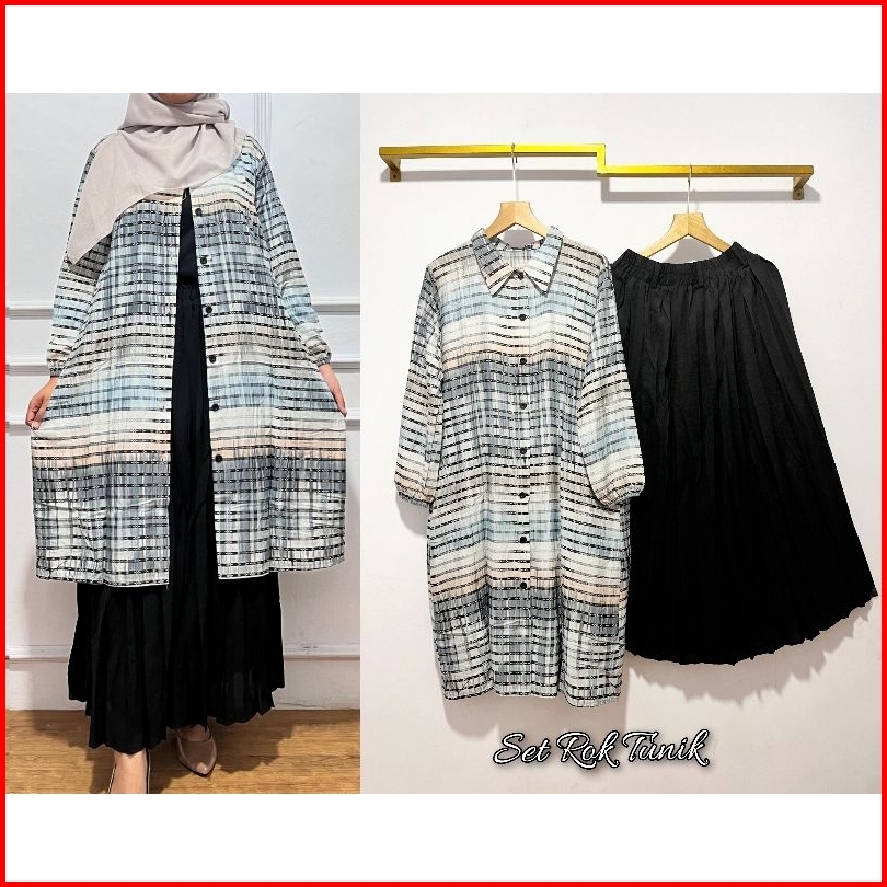 Setelan Outer Mecca Rok Lipit Long Tunik Set Rok Plisket Free Size Jumbo